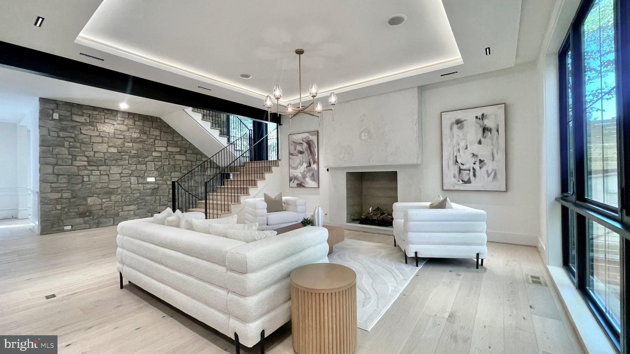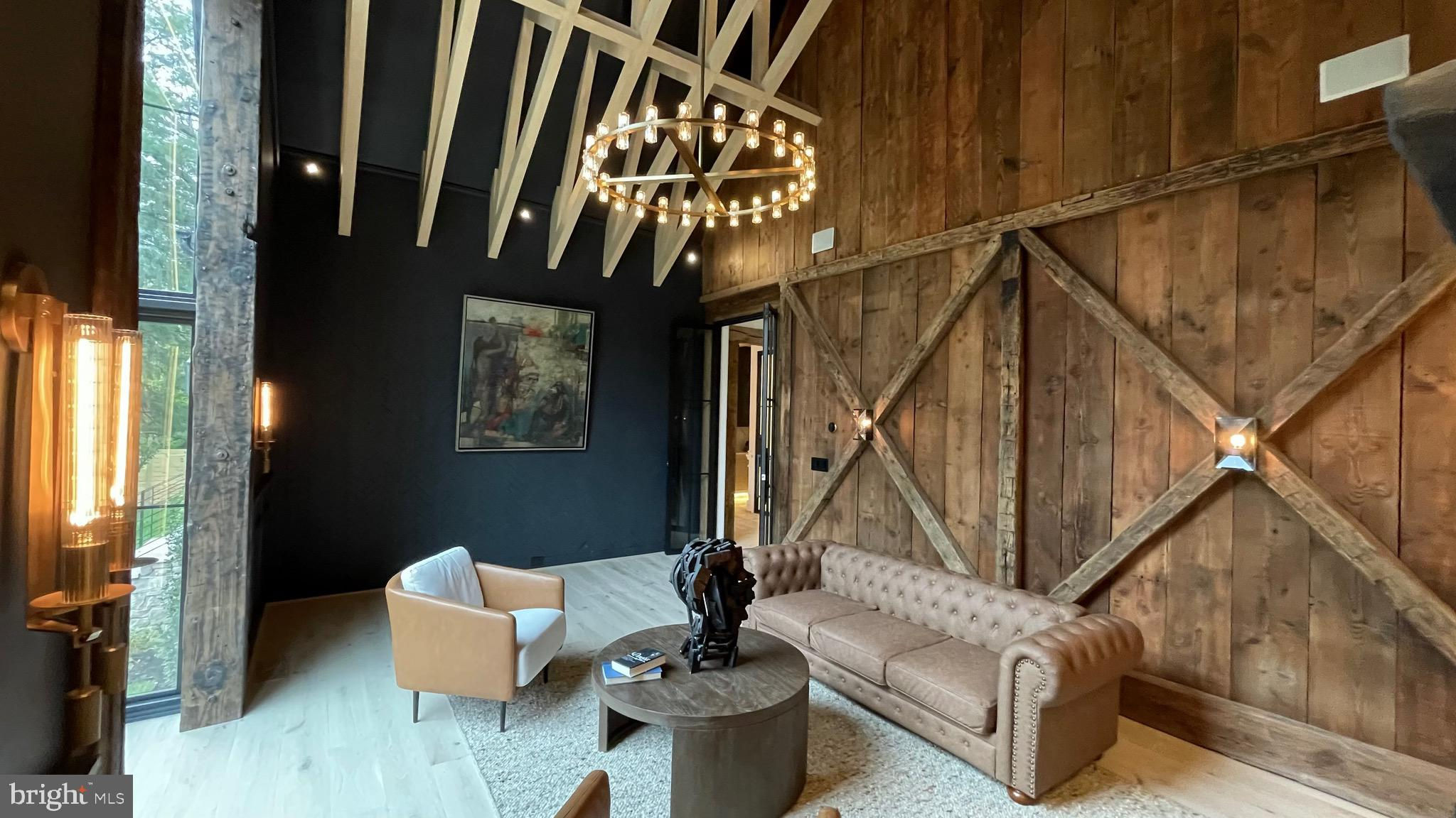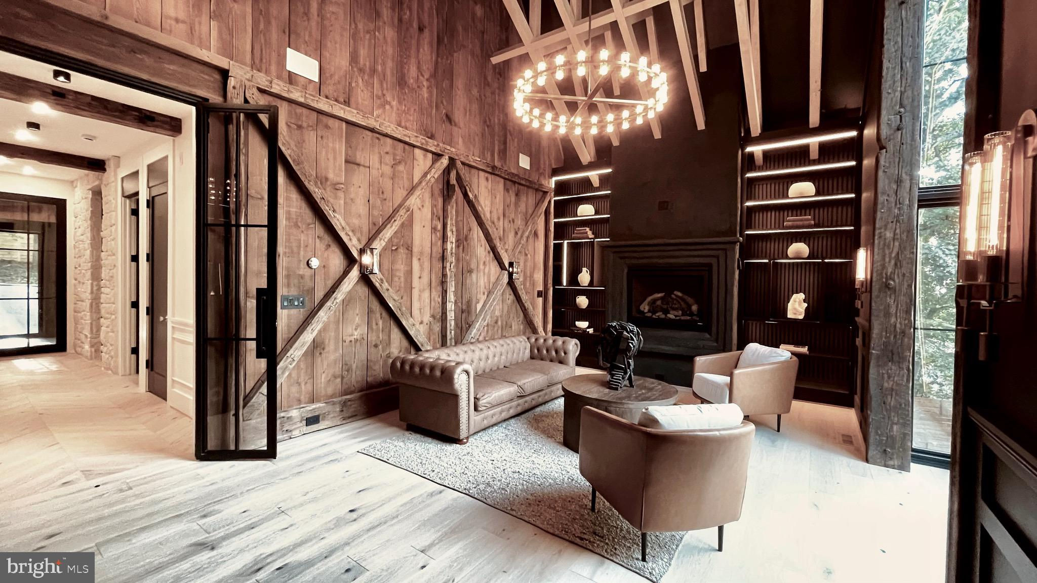 Introducing The Barn, a relaxed luxury by Artsy Homes, where timeless elegance blends effortlessly with refined comfort. A true expression of modern sophistication. From serene retreats in Washington, D.C. to countryside escapes reimagined in an urban setting, every detail of this home tells a story in the heart of Chesterbrook Woods, one of McLean’s premier neighborhoods. The exterior captivates with meticulous craftsmanship. Twelve-foot beams at the front entrance complement intricate stonework, while a grand Canadian maple Andersen door exudes striking presence. French gas lanterns paired with RH light fixtures add refined charm. A metal roof blends seamlessly with premium architectural shingles, and the façade combines stone with Shou Sugi Ban siding, accented by thoughtful landscaping that completes this cohesive architectural statement. At the heart of the home is a breathtaking thirty-foot-high lounge crowned with sixteen-foot windows, featuring a reclaimed roof rafter from 1847, salvaged from the last cotton mill of Virginia, that invites cascades of natural light throughout the day. The room, wrapped in century-old rugged heart pine and dark textured brick, carries a stillness that resonates deeply. Exposed roof rafters meticulously wrapped in birch wood add organic warmth to the soaring volume and create a space where serene grandeur meets quiet storytelling. Suspended above, the Arcachon Round brass chandelier anchors the room with rhythmic grace. Below, a custom-built fireplace framed by built-in bookshelves offers both intimacy and presence. The kitchen is an artful composition of form, light, and texture. A ten-foot brass-textured waterfall countertop exudes understated charm, while sun-filled windows invite the day’s shifting moods. The Fulcrum Pendant, with its hand-blown glass and brass, hovers sculpturally, casting a gentle glow. Limestone walls evoke the Tuscan countryside’s earthy timelessness. Chevron white oak floors, soft-toned cabinetry, and polished brass hardware from the Camden Collection, inspired by mid-century French and Italian design, blend quiet confidence with craftsmanship. Reclaimed beams paired with structural I-beams create a dialogue between history and modernity, making the kitchen a celebration of refined restraint and comfort. A slatted ceiling designed and constructed onsite guides you toward the dining area with a rhythm that feels intentional and fluid. There, a Tiered Rectangular Chandelier from the Marignan Collection, composed of more than one thousand crystal elements, takes center stage. Its interlocking formations float effortlessly, casting a shimmering cascade of light that fills the space with quiet drama. The Thaddeus Powder Room collection, inspired by the surreal artistry of Salvador Dalí and Diego Giacometti, features hand-forged metals, a bespoke custom sink, and refined fixtures that intertwine with effortless sophistication, resonating with the home’s cohesive aesthetic. (This offers just a glimpse of the main level, with even more to explore throughout the home.) At its core, Artsy Homes believes every house should tell a story, with each space unfolding as a meaningful chapter that endures over time, crafting environments that awaken reflection and wonder, where elegance and beauty invite you to slow down, breathe deeply, and embrace the true essence of feeling at home.