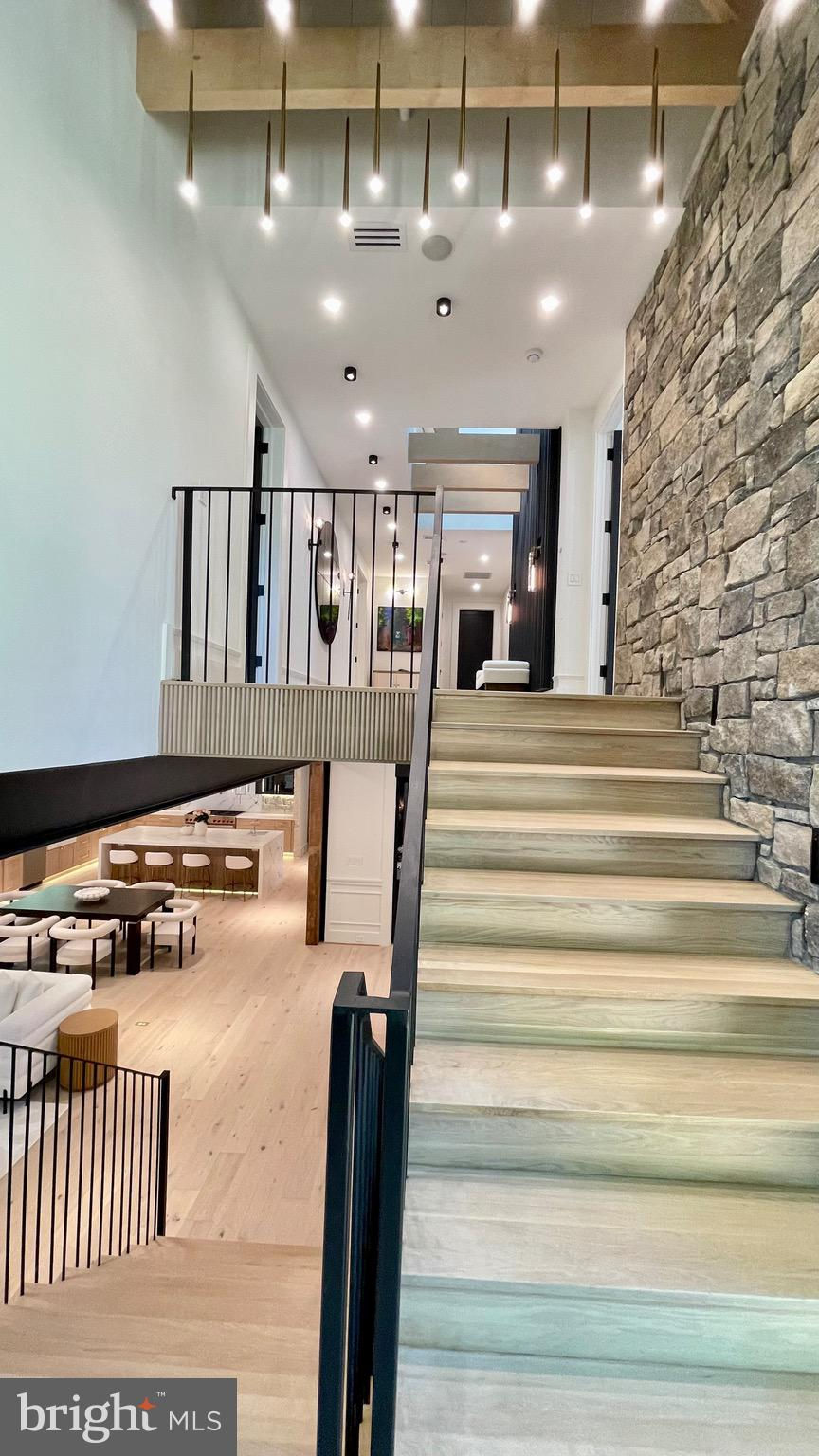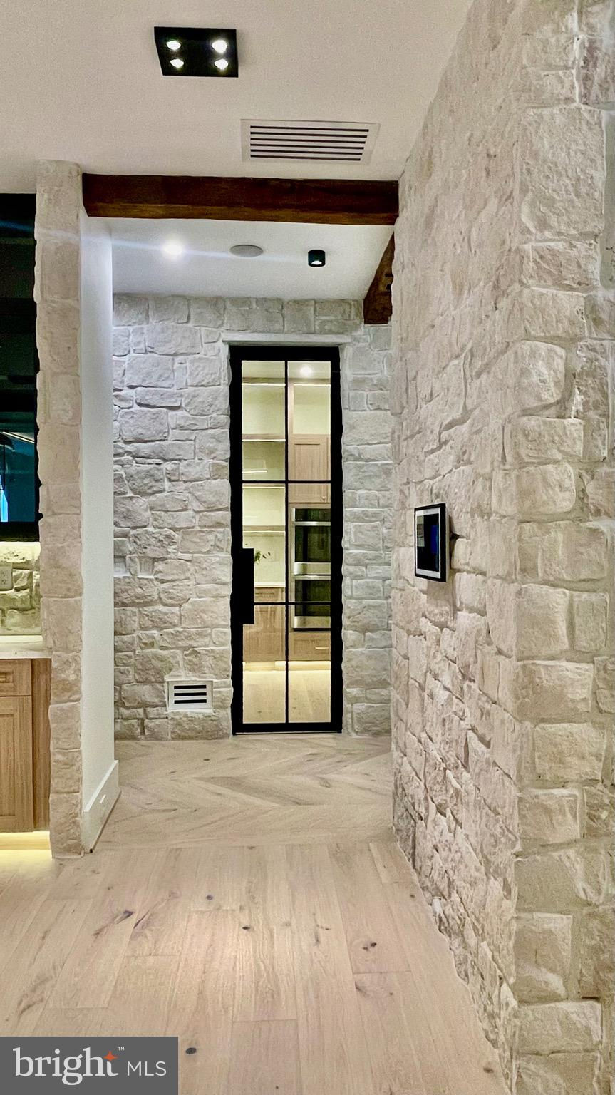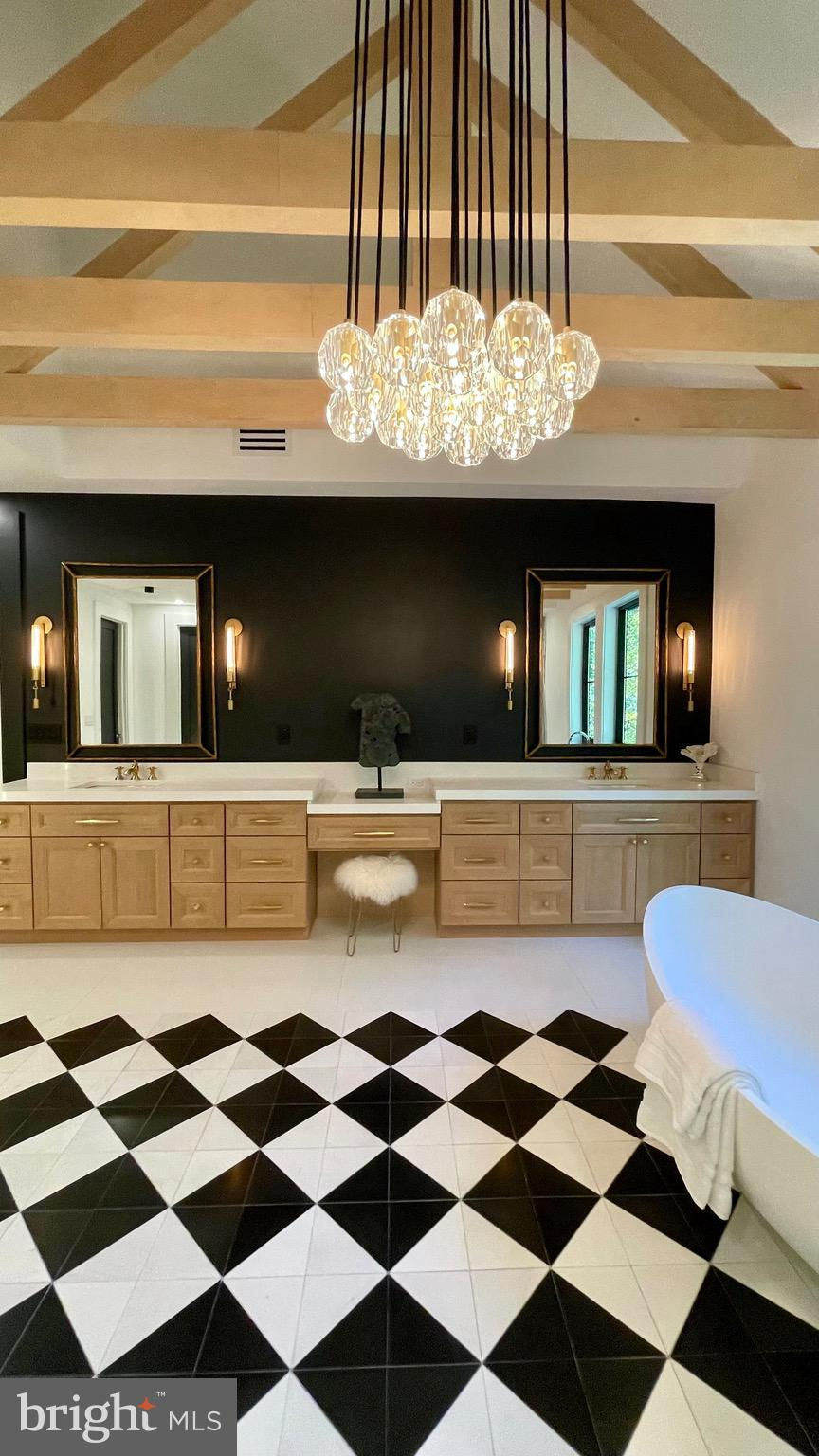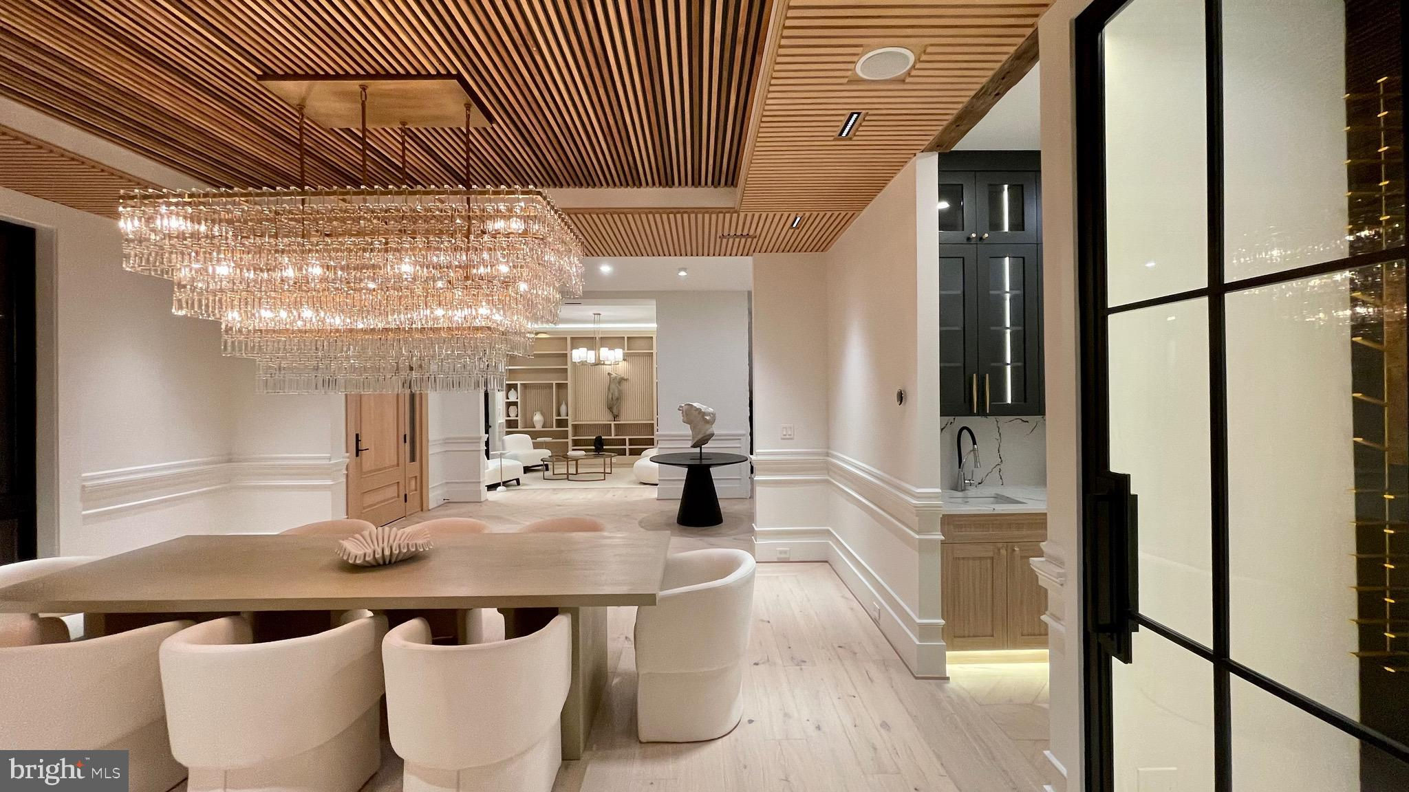 Introducing The Barn, a relaxed luxury by Artsy Homes, where timeless elegance blends effortlessly with refined comfort. A true expression of modern sophistication. From serene retreats in Washington, D.C. to countryside escapes reimagined in an urban setting, every detail of this home tells a story in the heart of Chesterbrook Woods, one of McLean’s premier neighborhoods. The exterior captivates with meticulous craftsmanship. Twelve-foot beams at the front entrance complement intricate stonework, while a grand Canadian maple Andersen door exudes striking presence. French gas lanterns paired with RH light fixtures add refined charm. A metal roof blends seamlessly with premium architectural shingles, and the façade combines stone with Shou Sugi Ban siding, accented by thoughtful landscaping that completes this cohesive architectural statement. At the heart of the home is a breathtaking thirty-foot-high lounge crowned with sixteen-foot windows, featuring a reclaimed roof rafter from 1847, salvaged from the last cotton mill of Virginia, that invites cascades of natural light throughout the day. The room, wrapped in century-old rugged heart pine and dark textured brick, carries a stillness that resonates deeply. Exposed roof rafters meticulously wrapped in birch wood add organic warmth to the soaring volume and create a space where serene grandeur meets quiet storytelling. Suspended above, the Arcachon Round brass chandelier anchors the room with rhythmic grace. Below, a custom-built fireplace framed by built-in bookshelves offers both intimacy and presence. The kitchen is an artful composition of form, light, and texture. A ten-foot brass-textured waterfall countertop exudes understated charm, while sun-filled windows invite the day’s shifting moods. The Fulcrum Pendant, with its hand-blown glass and brass, hovers sculpturally, casting a gentle glow. Limestone walls evoke the Tuscan countryside’s earthy timelessness. Chevron white oak floors, soft-toned cabinetry, and polished brass hardware from the Camden Collection, inspired by mid-century French and Italian design, blend quiet confidence with craftsmanship. Reclaimed beams paired with structural I-beams create a dialogue between history and modernity, making the kitchen a celebration of refined restraint and comfort. A slatted ceiling designed and constructed onsite guides you toward the dining area with a rhythm that feels intentional and fluid. There, a Tiered Rectangular Chandelier from the Marignan Collection, composed of more than one thousand crystal elements, takes center stage. Its interlocking formations float effortlessly, casting a shimmering cascade of light that fills the space with quiet drama. The Thaddeus Powder Room collection, inspired by the surreal artistry of Salvador Dalí and Diego Giacometti, features hand-forged metals, a bespoke custom sink, and refined fixtures that intertwine with effortless sophistication, resonating with the home’s cohesive aesthetic. (This offers just a glimpse of the main level, with even more to explore throughout the home.) At its core, Artsy Homes believes every house should tell a story, with each space unfolding as a meaningful chapter that endures over time, crafting environments that awaken reflection and wonder, where elegance and beauty invite you to slow down, breathe deeply, and embrace the true essence of feeling at home.