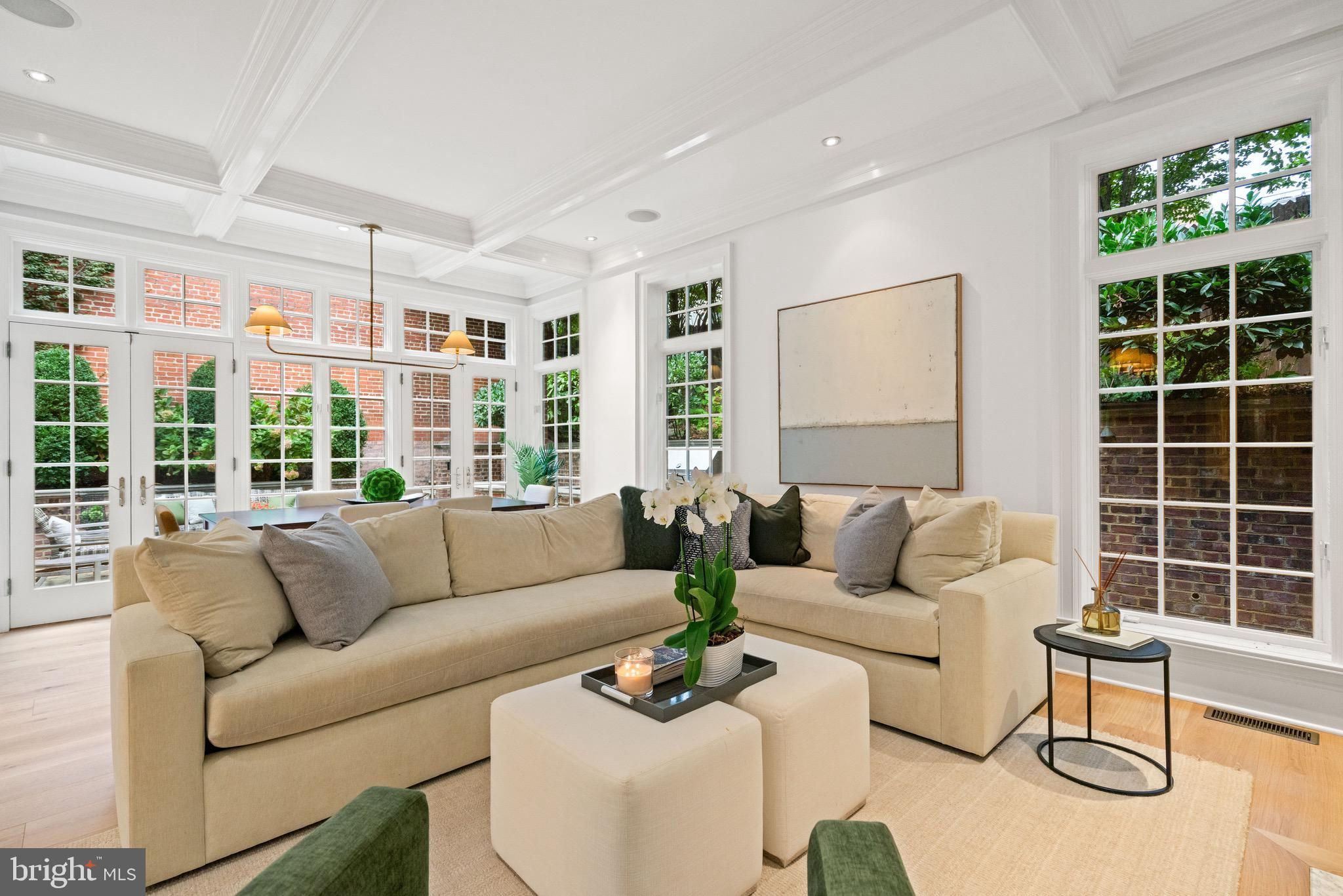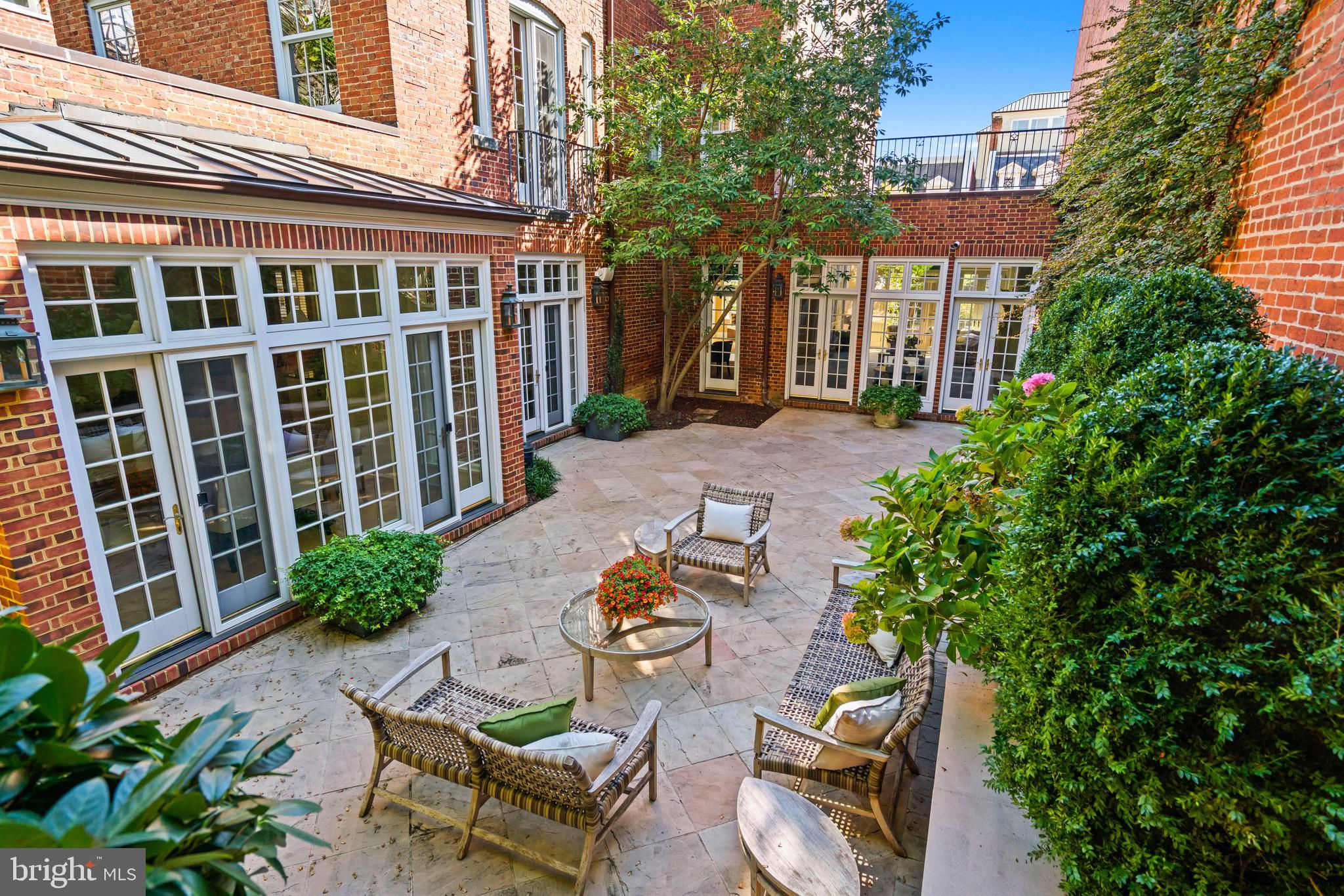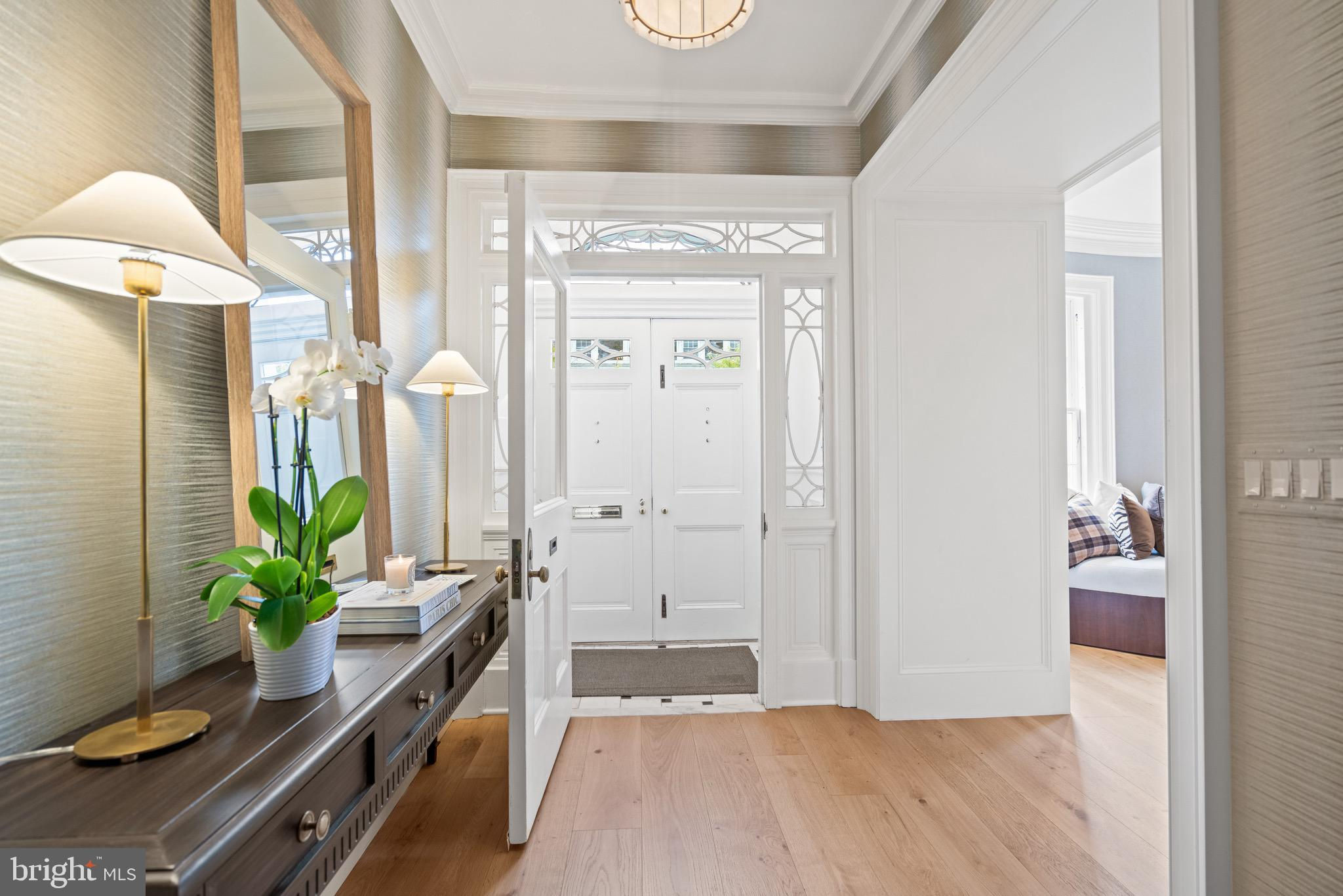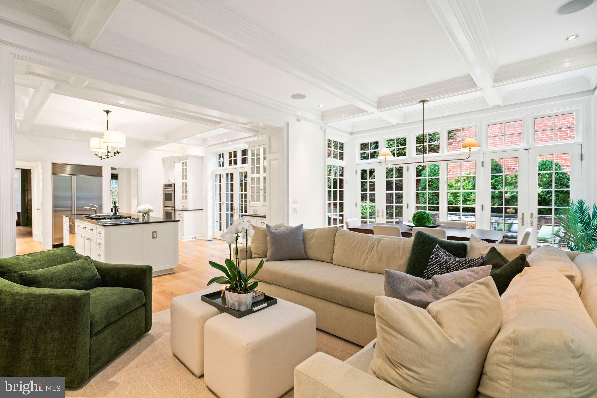 An Elegant Kalorama Residence: Evoking the timeless character of a London townhouse, this distinguished 1911 residence blends classic grandeur with contemporary ease. Graceful proportions, soaring ceilings, intricate moldings, and rich hardwood floors define its character, while a thoughtfully reimagined floor plan welcomes modern living and effortless entertaining. A stately entrance hall introduces exquisite architectural details including coffered ceilings, wainscoting, pocket doors, and a grand staircase. Six fireplaces lend warmth and atmosphere throughout. The sunlit front reception room opens seamlessly to a spacious living room and a banquet-sized dining room, creating a refined setting for gatherings. The bright white kitchen with a center island, breakfast bar, and adjoining family room invites relaxed everyday living. Walls of windows and French doors connect every main level space to expansive flagstone terraces and a beautifully landscaped garden, ideal for indoor and outdoor enjoyment. The second floor is devoted to the luxurious primary suite, featuring an oversized bedroom, spa-like bath, dual closets, a private roof deck, and a handsome paneled library. Upstairs, the third floor offers three lovely bedrooms and two full baths. The light-filled lower level, with a separate side entrance, includes a family room, full bath, wine cellar, ample storage, and direct access to the attached two-car garage. Additional highlights include an elevator serving all levels, six fireplaces, a large terrace, and garage parking for two cars plus additional driveway space. The garage is equipped with a level 2 charger for electric vehicles. Perfectly positioned in Kalorama, one of Washington’s most coveted neighborhoods, this remarkable home offers easy access to Rock Creek Park, fine dining, boutique shopping, Metro, and Georgetown. Offered at $5.7 million.