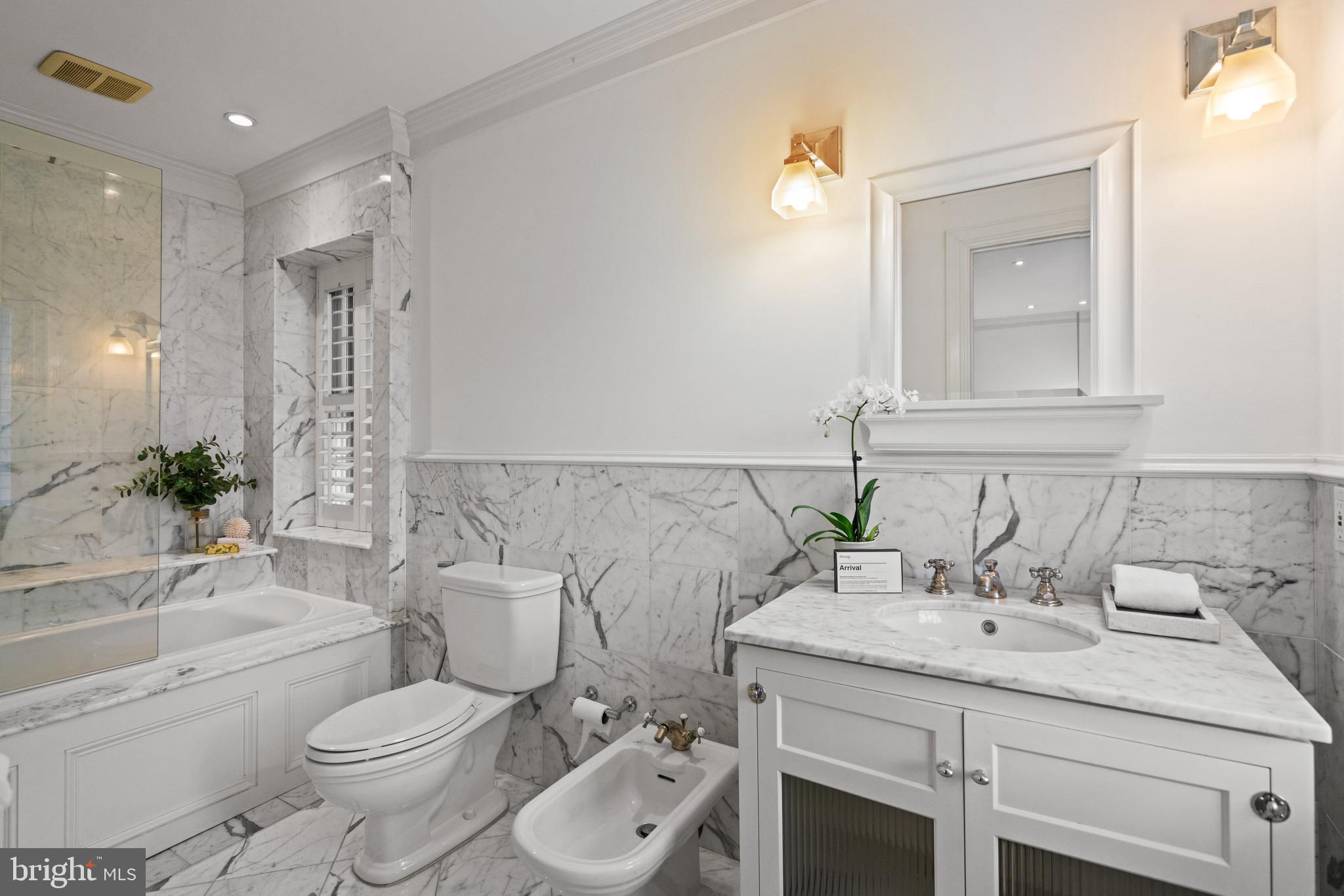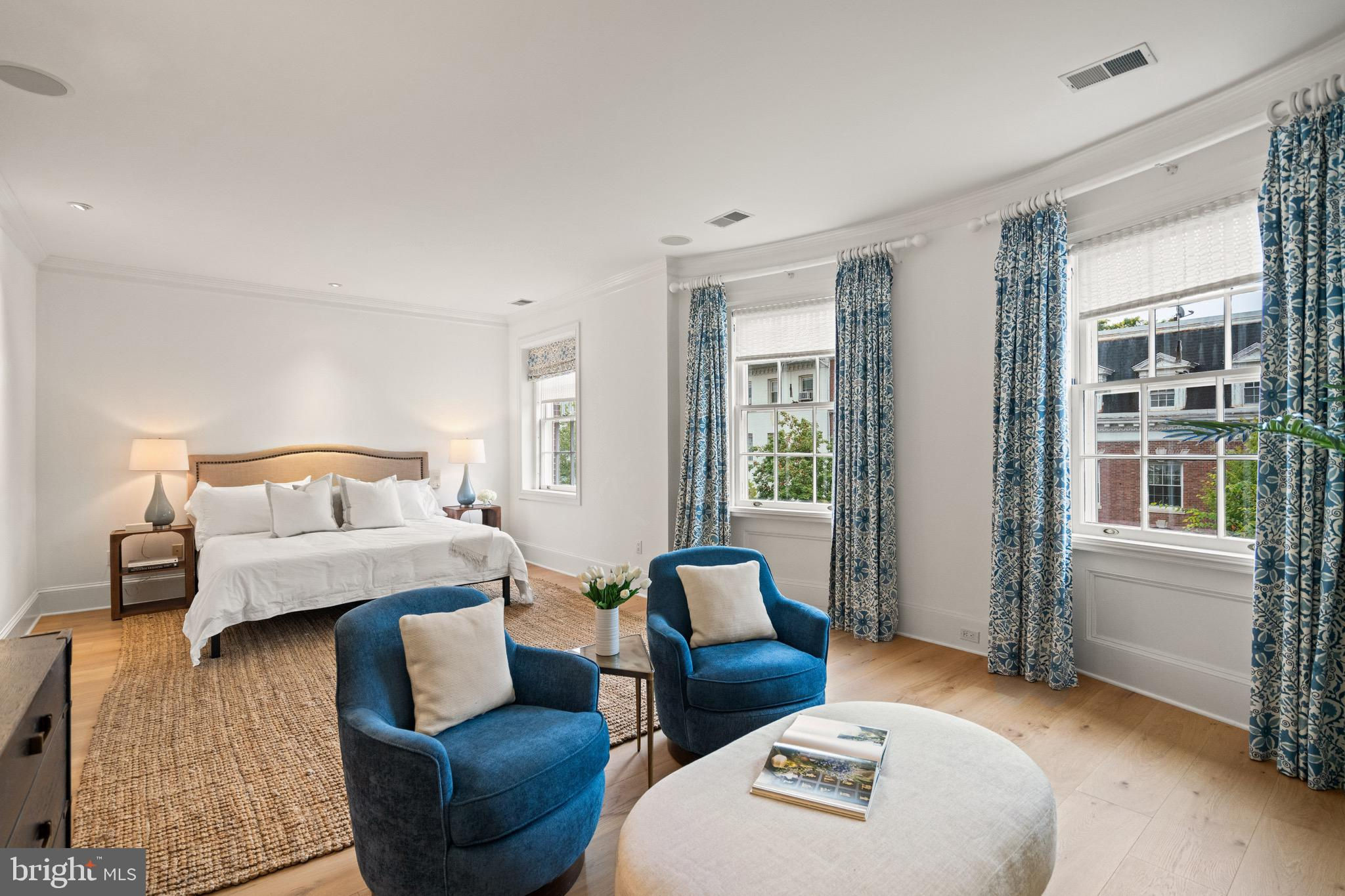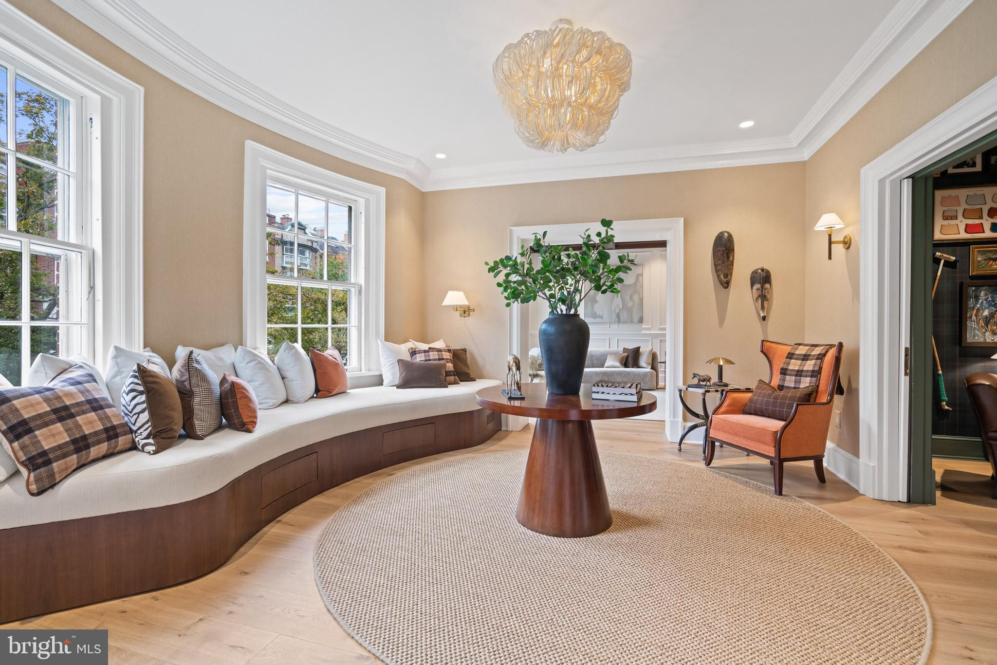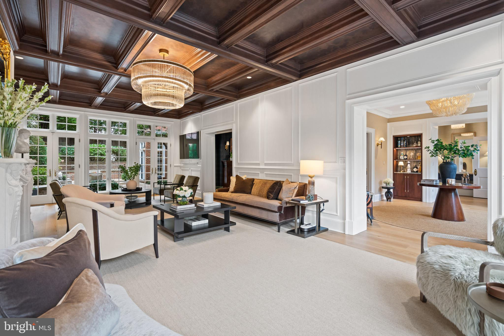 An Elegant Kalorama Residence: Evoking the timeless character of a London townhouse, this distinguished 1911 residence blends classic grandeur with contemporary ease. Graceful proportions, soaring ceilings, intricate moldings, and rich hardwood floors define its character, while a thoughtfully reimagined floor plan welcomes modern living and effortless entertaining. A stately entrance hall introduces exquisite architectural details including coffered ceilings, wainscoting, pocket doors, and a grand staircase. Six fireplaces lend warmth and atmosphere throughout. The sunlit front reception room opens seamlessly to a spacious living room and a banquet-sized dining room, creating a refined setting for gatherings. The bright white kitchen with a center island, breakfast bar, and adjoining family room invites relaxed everyday living. Walls of windows and French doors connect every main level space to expansive flagstone terraces and a beautifully landscaped garden, ideal for indoor and outdoor enjoyment. The second floor is devoted to the luxurious primary suite, featuring an oversized bedroom, spa-like bath, dual closets, a private roof deck, and a handsome paneled library. Upstairs, the third floor offers three lovely bedrooms and two full baths. The light-filled lower level, with a separate side entrance, includes a family room, full bath, wine cellar, ample storage, and direct access to the attached two-car garage. Additional highlights include an elevator serving all levels, six fireplaces, a large terrace, and garage parking for two cars plus additional driveway space. The garage is equipped with a level 2 charger for electric vehicles. Perfectly positioned in Kalorama, one of Washington’s most coveted neighborhoods, this remarkable home offers easy access to Rock Creek Park, fine dining, boutique shopping, Metro, and Georgetown. Offered at $5.7 million.
