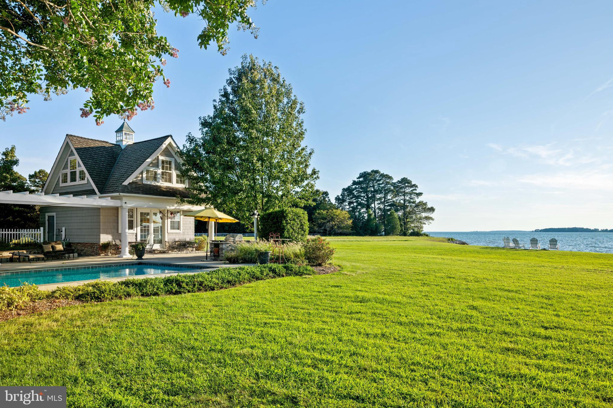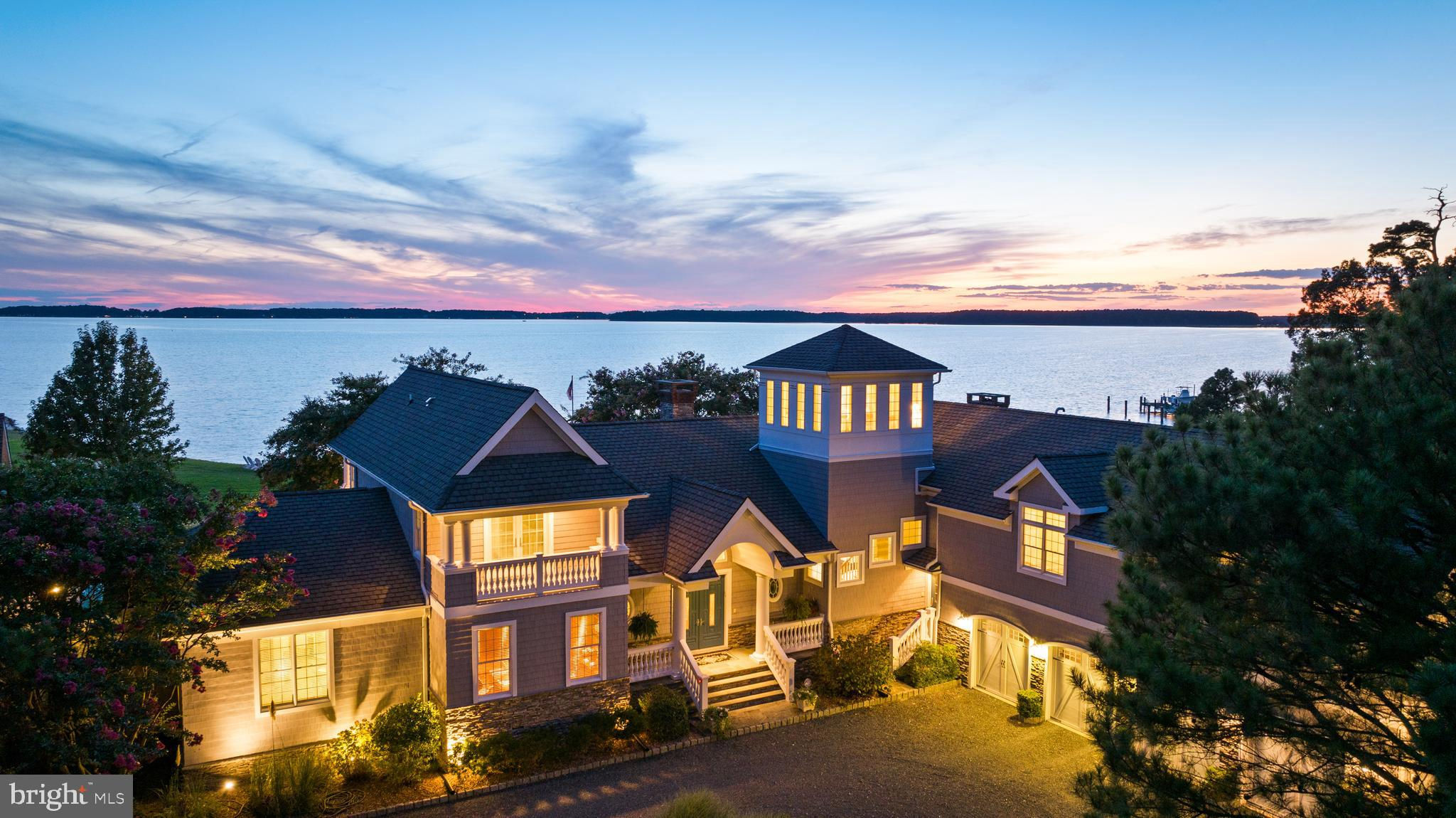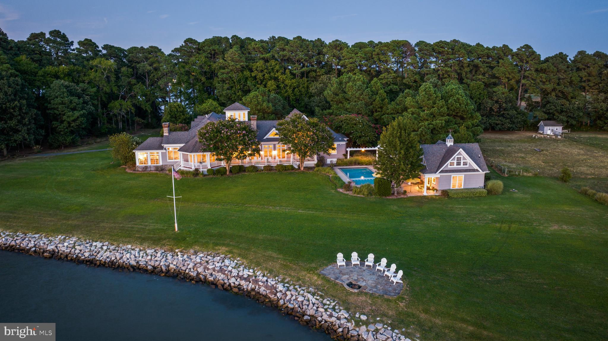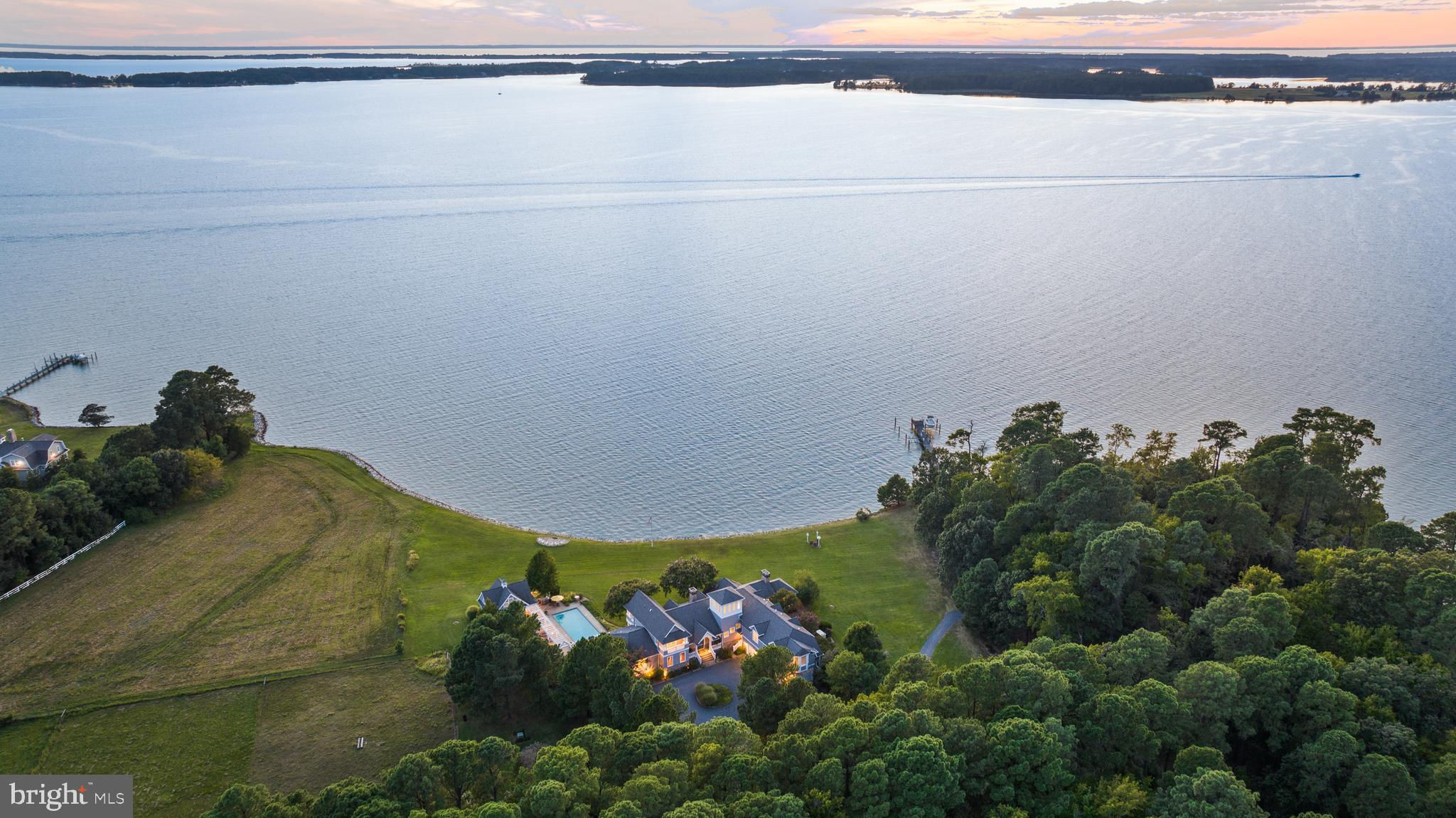 Welcome to Deep Neck Farm Lane, a stately waterfront farm overlooking Broad Creek with sweeping west and southwest views that stretch over the Choptank River to the Western Shore. This extraordinary estate captures dramatic sunsets, summer breezes, and shelter from northern winds, all from an unrivaled vantage point. Built in 2006 by a builder for their family, the 8,500± square foot residence provides thoughtful design and enduring craftsmanship. The home was built for hosting and gathering. Seven ensuite bedrooms welcome family and friends, while soaring ceilings, three fireplaces, and a cozy morning room with a wood stove set the tone for gracious living. The turret, perched to catch the last rays of daylight, reminds one that every detail was designed around the water. The accessory structures and outdoor areas for entertaining are well-positioned to capture broad views and an immense water presence. From the waterside deck of the residence to the pool house with bathroom, loft, kitchenette, and outdoor grill, to the riverfront fire pit, the focal point is Broad Creek. The broad water portion of the shoreline is protected with 1,900 feet of stone revetment, and the remaining 2,500 feet of shoreline along Bridge Creek provides a natural setting. The farm has 13 acres under cultivation, with 3.5 acres in pasture. In addition, a 40 x 60 pole barn, featuring a second-floor caretaker apartment, provides ample space for the hobby enthusiast, complete with a workshop and off-season storage.
