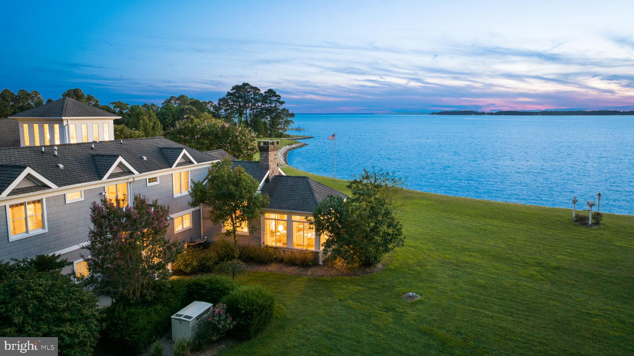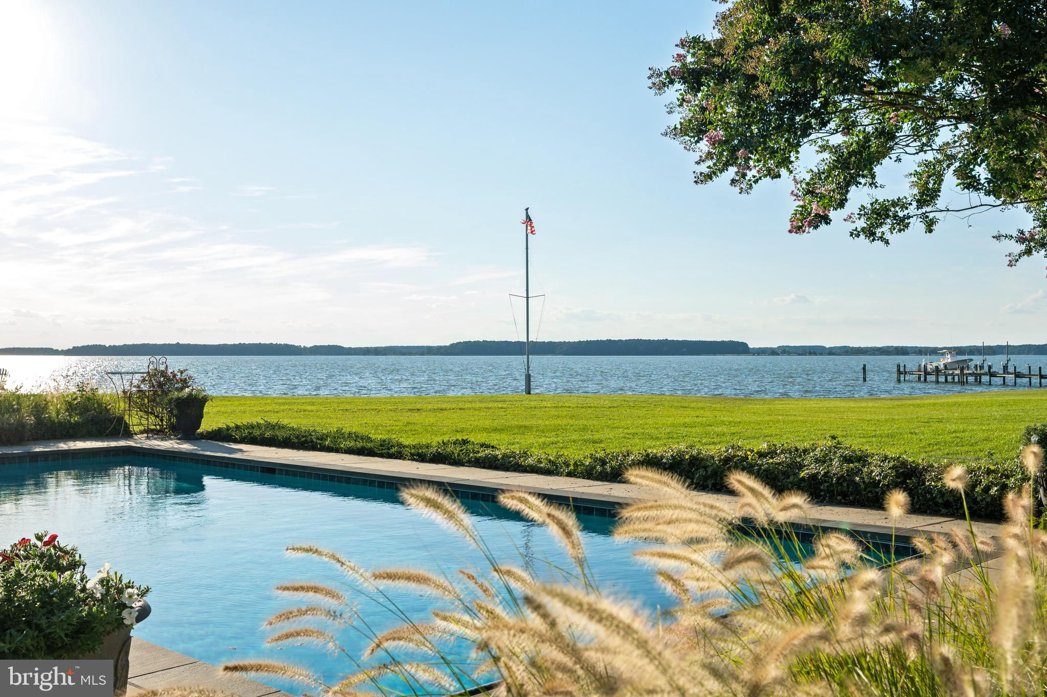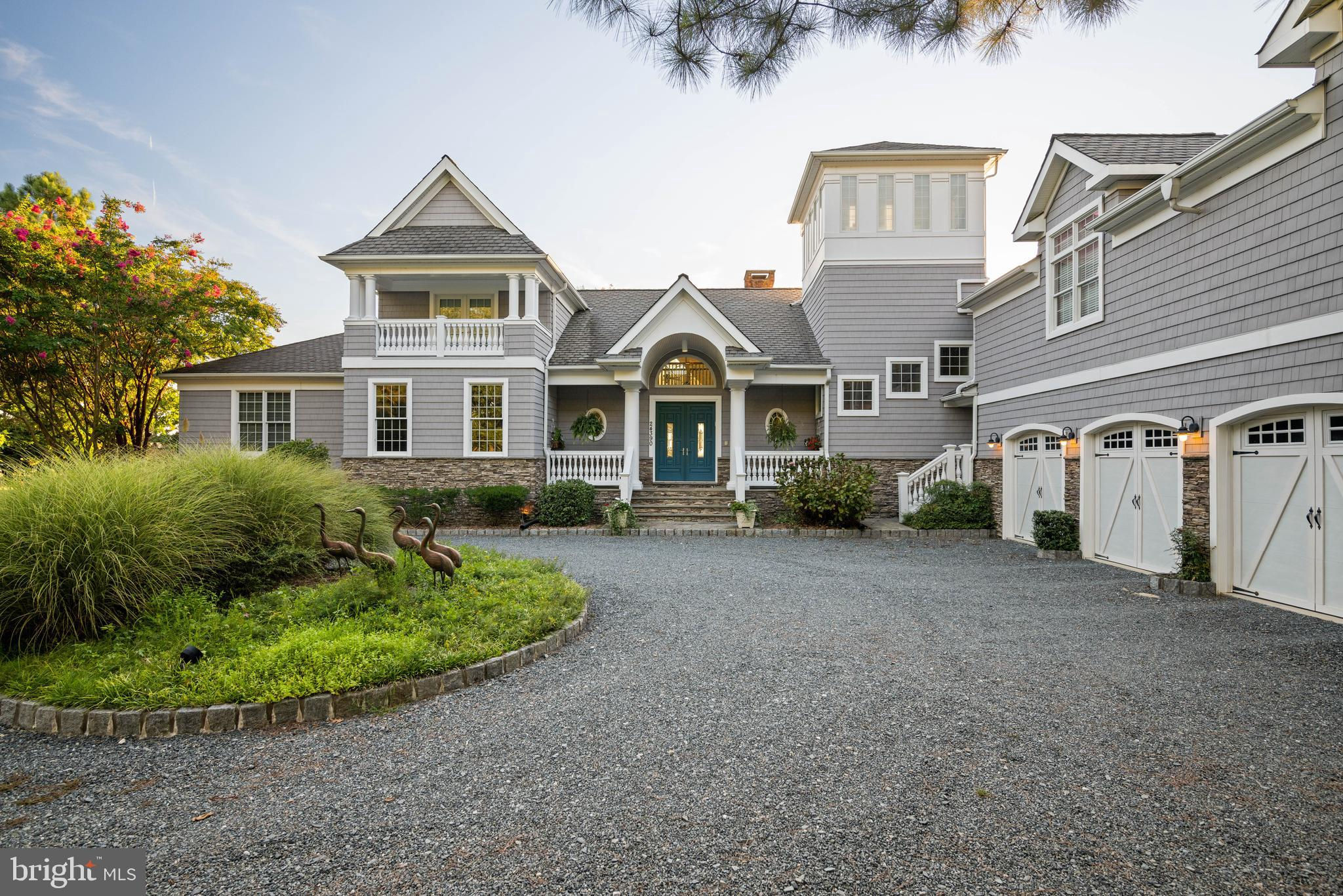 Welcome to Deep Neck Farm Lane, a stately waterfront farm overlooking Broad Creek with sweeping west and southwest views that stretch over the Choptank River to the Western Shore. This extraordinary estate captures dramatic sunsets, summer breezes, and shelter from northern winds, all from an unrivaled vantage point. Built in 2006 by a builder for their family, the 8,500± square foot residence provides thoughtful design and enduring craftsmanship. The home was built for hosting and gathering. Seven ensuite bedrooms welcome family and friends, while soaring ceilings, three fireplaces, and a cozy morning room with a wood stove set the tone for gracious living. The turret, perched to catch the last rays of daylight, reminds one that every detail was designed around the water. The accessory structures and outdoor areas for entertaining are well-positioned to capture broad views and an immense water presence. From the waterside deck of the residence to the pool house with bathroom, loft, kitchenette, and outdoor grill, to the riverfront fire pit, the focal point is Broad Creek. The broad water portion of the shoreline is protected with 1,900 feet of stone revetment, and the remaining 2,500 feet of shoreline along Bridge Creek provides a natural setting. The farm has 13 acres under cultivation, with 3.5 acres in pasture. In addition, a 40 x 60 pole barn, featuring a second-floor caretaker apartment, provides ample space for the hobby enthusiast, complete with a workshop and off-season storage.