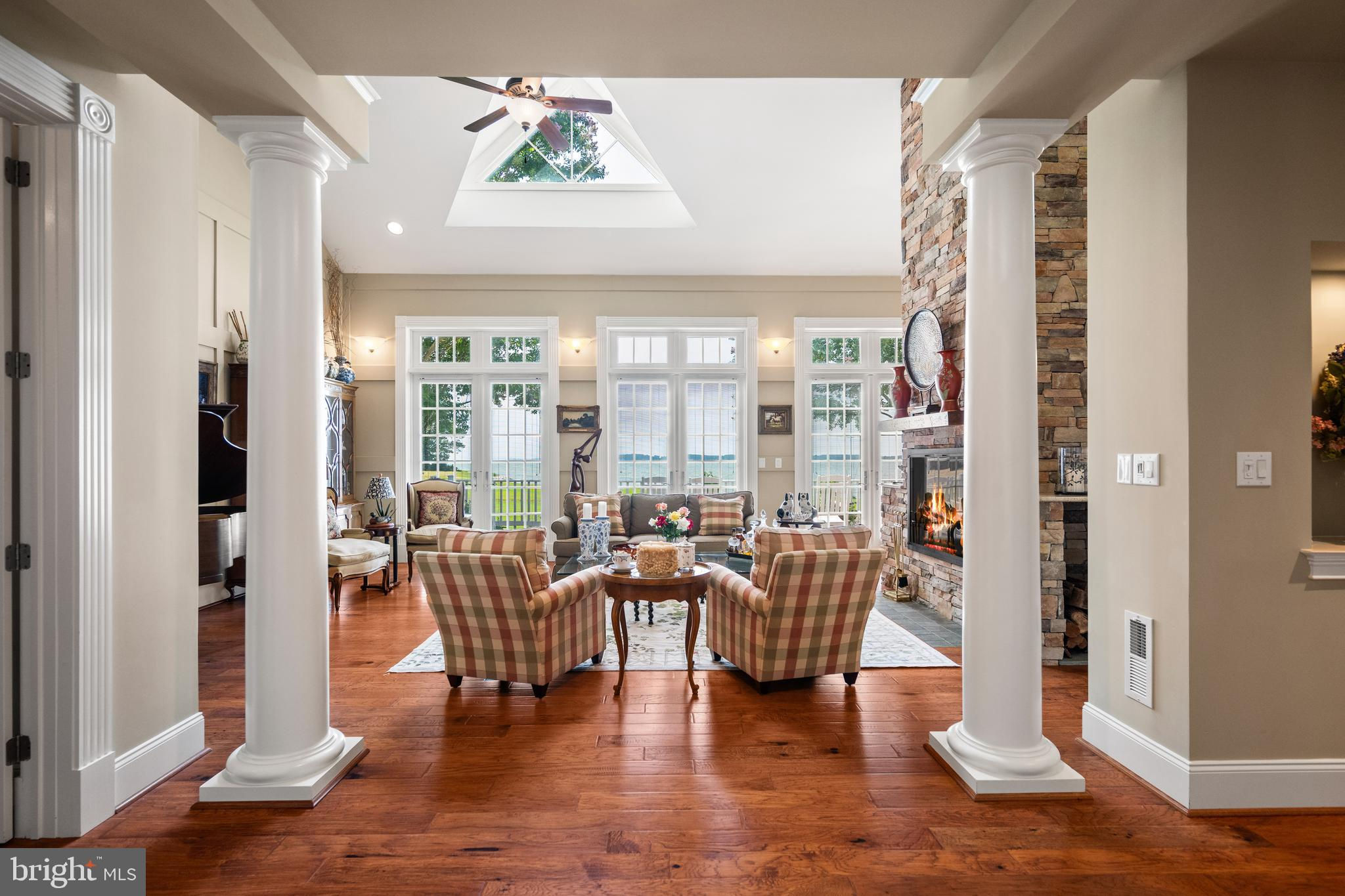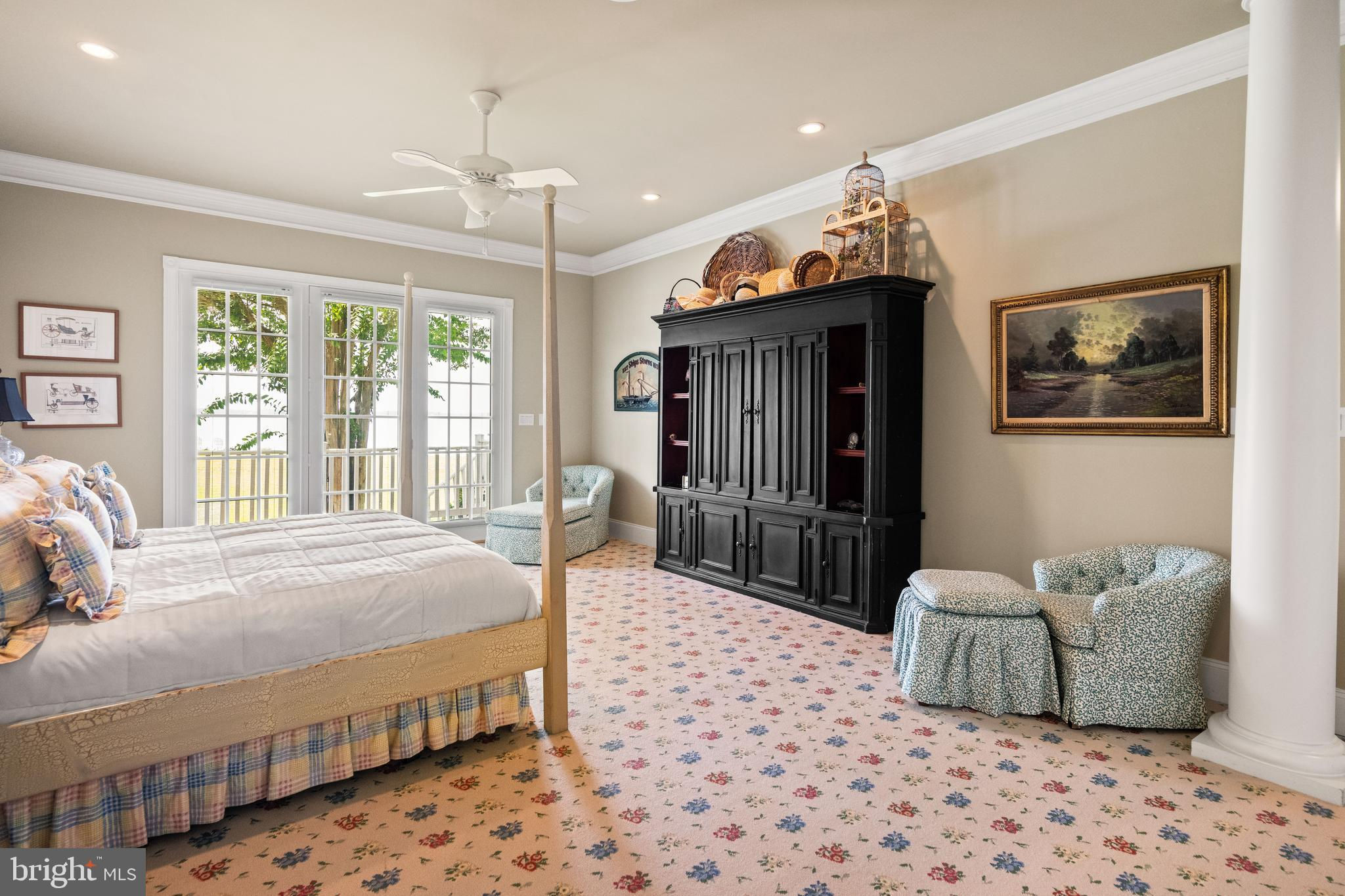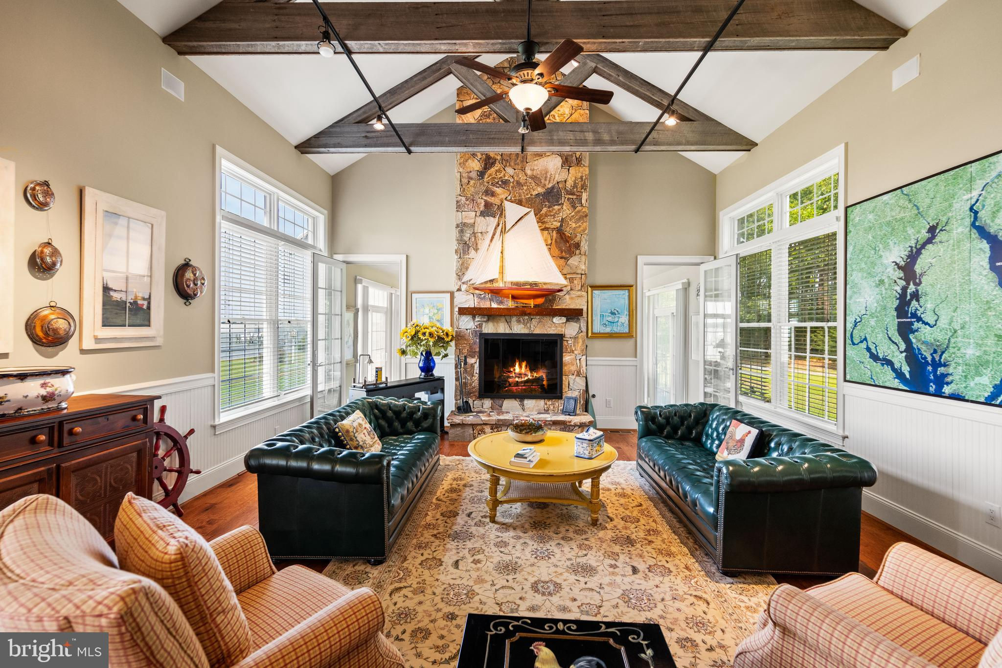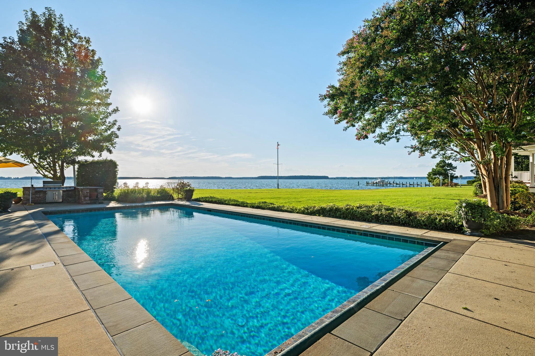 Welcome to Deep Neck Farm Lane, a stately waterfront farm overlooking Broad Creek with sweeping west and southwest views that stretch over the Choptank River to the Western Shore. This extraordinary estate captures dramatic sunsets, summer breezes, and shelter from northern winds, all from an unrivaled vantage point. Built in 2006 by a builder for their family, the 8,500± square foot residence provides thoughtful design and enduring craftsmanship. The home was built for hosting and gathering. Seven ensuite bedrooms welcome family and friends, while soaring ceilings, three fireplaces, and a cozy morning room with a wood stove set the tone for gracious living. The turret, perched to catch the last rays of daylight, reminds one that every detail was designed around the water. The accessory structures and outdoor areas for entertaining are well-positioned to capture broad views and an immense water presence. From the waterside deck of the residence to the pool house with bathroom, loft, kitchenette, and outdoor grill, to the riverfront fire pit, the focal point is Broad Creek. The broad water portion of the shoreline is protected with 1,900 feet of stone revetment, and the remaining 2,500 feet of shoreline along Bridge Creek provides a natural setting. The farm has 13 acres under cultivation, with 3.5 acres in pasture. In addition, a 40 x 60 pole barn, featuring a second-floor caretaker apartment, provides ample space for the hobby enthusiast, complete with a workshop and off-season storage.
