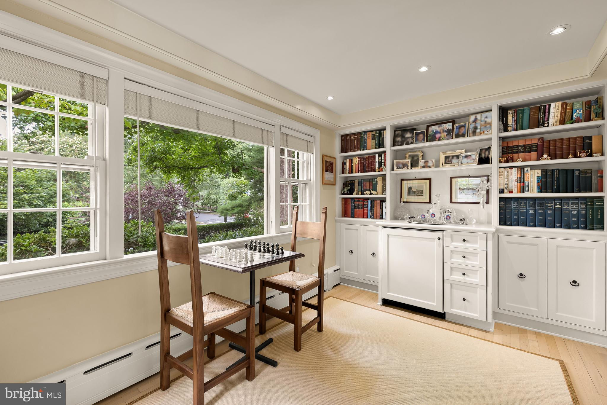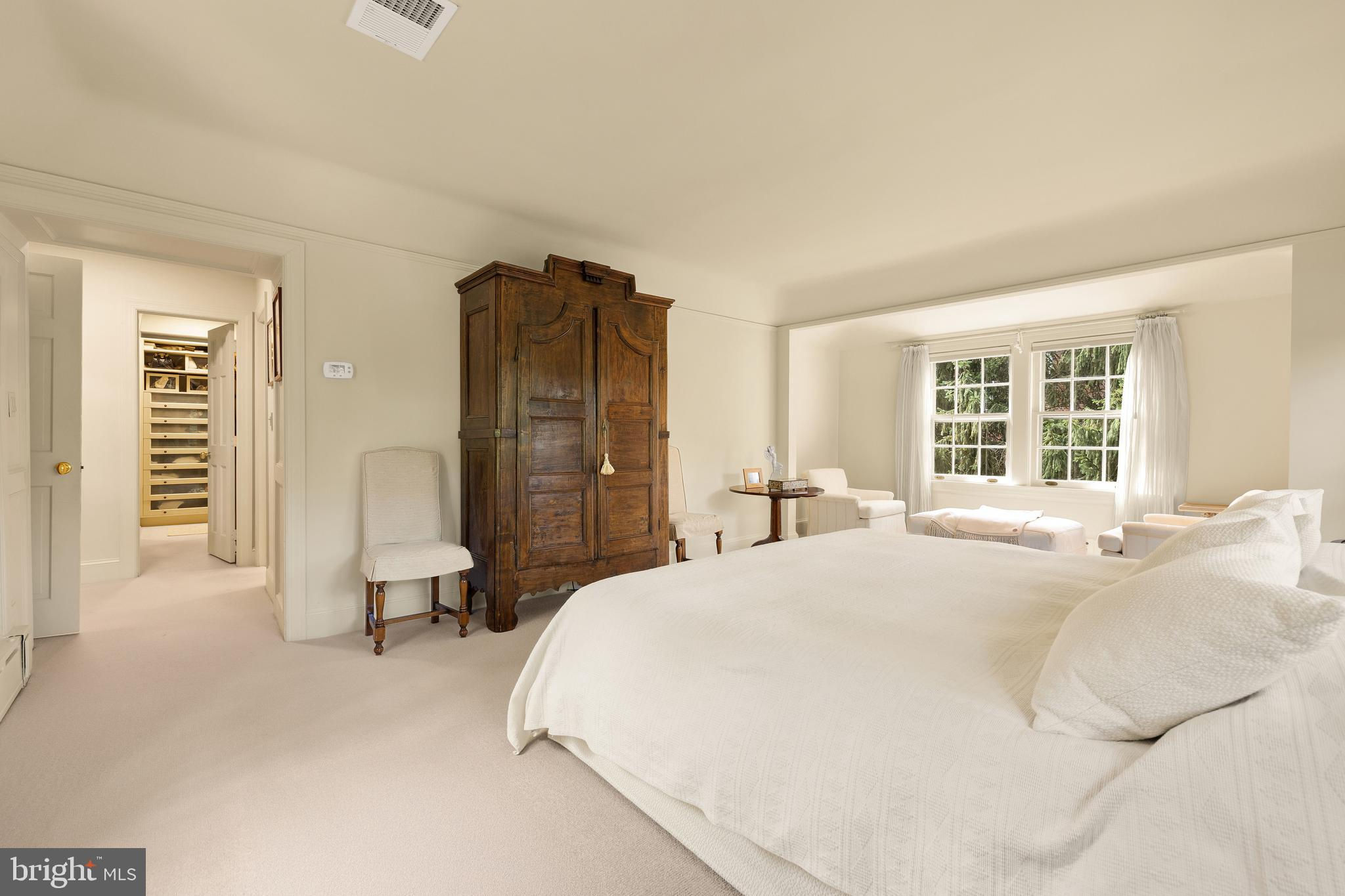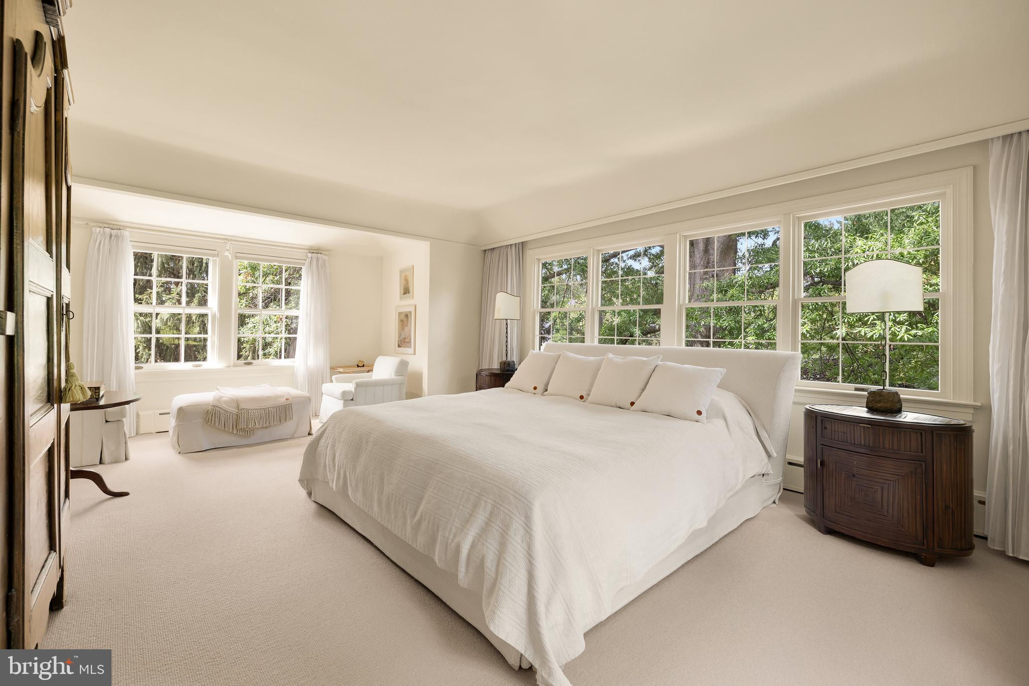 Synonymous with architectural charm and timeless appeal, the grand homes of Wesley Heights are among Washington’s most desirable. Within this verdant enclave lies 2927 44th Street NW, a European-inspired Tudor originally constructed in 1927. Perfectly sited just above street level on a private double corner lot of nearly half an acre, the residence combines historic character with thoughtful modern updates implemented beautifully by Solis Betancourt. A brick walkway meanders through the manicured front lawn, traversing a brick retaining wall upon which a neatly-trimmed row of hedges sits. The residence, with its gables, dormers, and cream stucco exterior, exudes the quintessential Tudor charm. The main entrance is located off a cozy brick patio beneath a petite portico, opening to reveal 5,100 square feet of ethereal interiors. The foyer introduces bright wood floors, sleek recessed lighting, and the grand staircase with an artful wrought iron baluster. Designed for large-scale entertaining, the formal living room spans 27 feet in depth and features a roaring wood burning fireplace framed by two sets of French doors elegantly opening onto the rear terrace to introduce an al fresco lifestyle. A sunroom is tucked away, with large picture windows overlooking the front grounds and a wall of built-ins for a quiet reading nook. Likewise, another sunroom is attached to the embassy-sized formal dining room, ideal as a private office. At the heart of the home’s informal wing is an open concept kitchen and family room. The former balances form and function with cathedral ceilings, granite counters, ample cabinetry, and top-of-the-line appliances from Thermador and SubZero. The latter features soaring vaulted and beamed ceilings with skylights, augmenting open sightlines to the rear patio via glass doors. A discreet wing contains a full main level bedroom suite. The upper level primary suite is entered via a dedicated vestibule within its own wing. A private sitting area is flooded with natural light. Ubiquitous luxuries include a gallery-like walk-in closet lined with built-ins and a marble bath with dual vanities, soaking tub, and heated towel rack for a sanctuary of comfort. Two additional bedrooms are located on the opposite side of the upper level, each with built-ins, expansive windows, and ensuite baths. On the loft level above is a fifth bedroom suite and attached bonus room. A sixth bedroom, ideal for an au pair or in-law suite, is found on the lower level in addition to a full bath and generous laundry room. A practical driveway runs along the side of the home, leading to the carport, motor court, and a detached room which serves as an exemplary fitness center, yoga studio, or zen space. Evoking cues of the Cotswolds with its yellow pebble paths and geometric greenery, the rear lawn, designed by Katia Goffin, was celebrated in Home & Design Magazine, exemplifying a seamless blend of hardscape and horticultural artistry. An elevated brick patio surrounds the heated lap pool, from which a sweeping view of the masterful grounds can be captured. Without peer in terms of location, the home is less than half a mile from Foxhall Square, 1.5 miles from the vibrant establishments of the Palisades’ main street, and just over two miles to Georgetown. Gracefully uniting timeless design, luxurious amenities, and extraordinary grounds, 2927 44th Street NW is a historic Tudor reimagined for modern living.