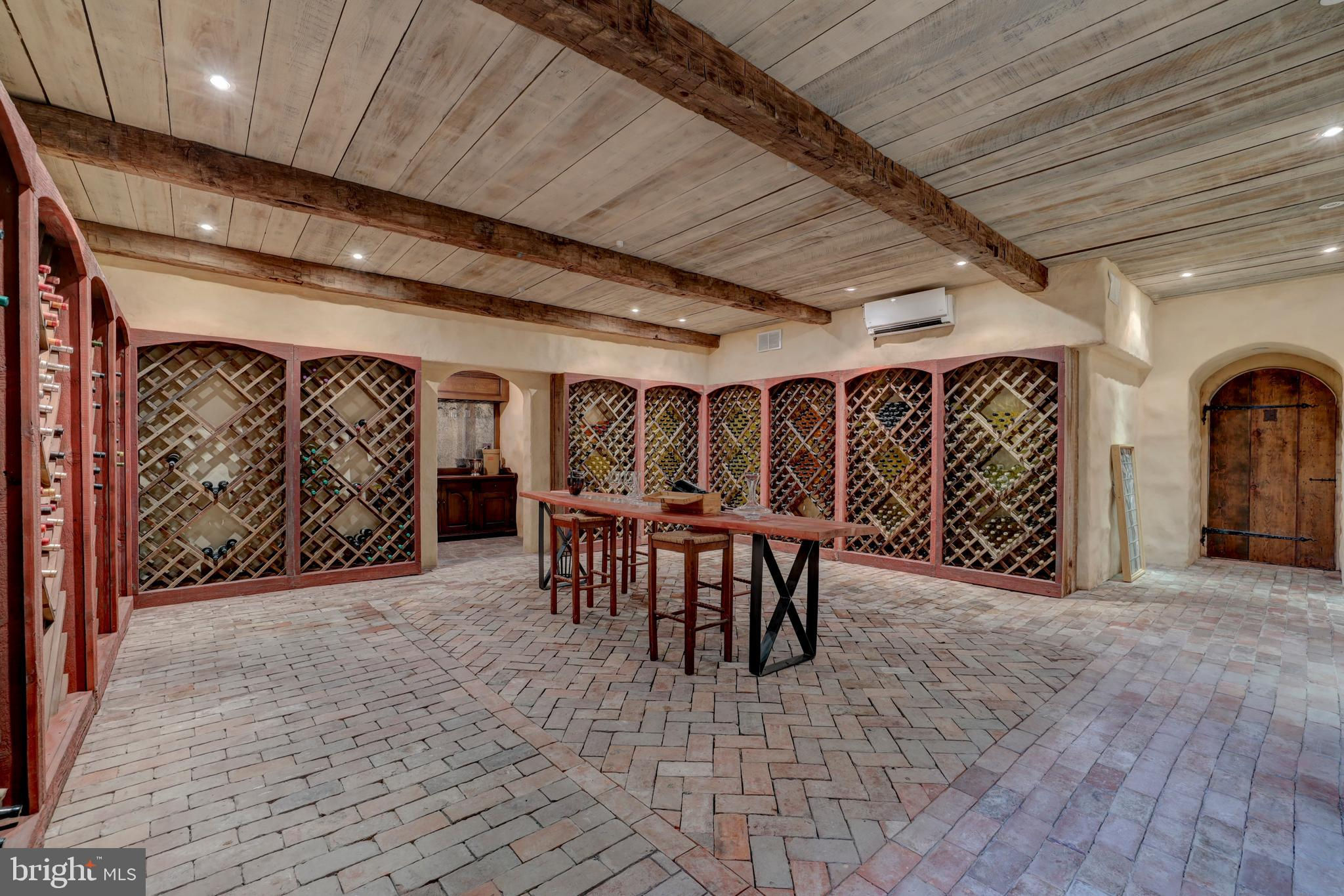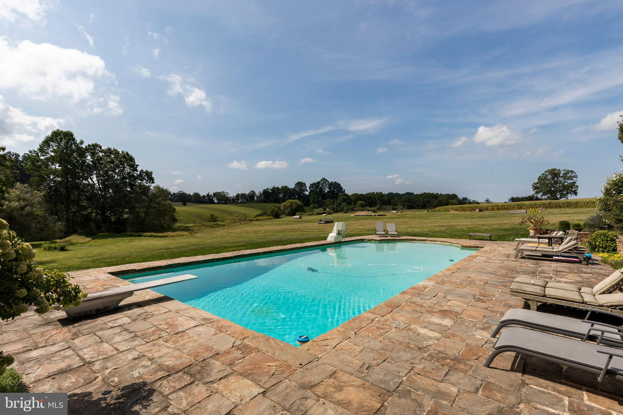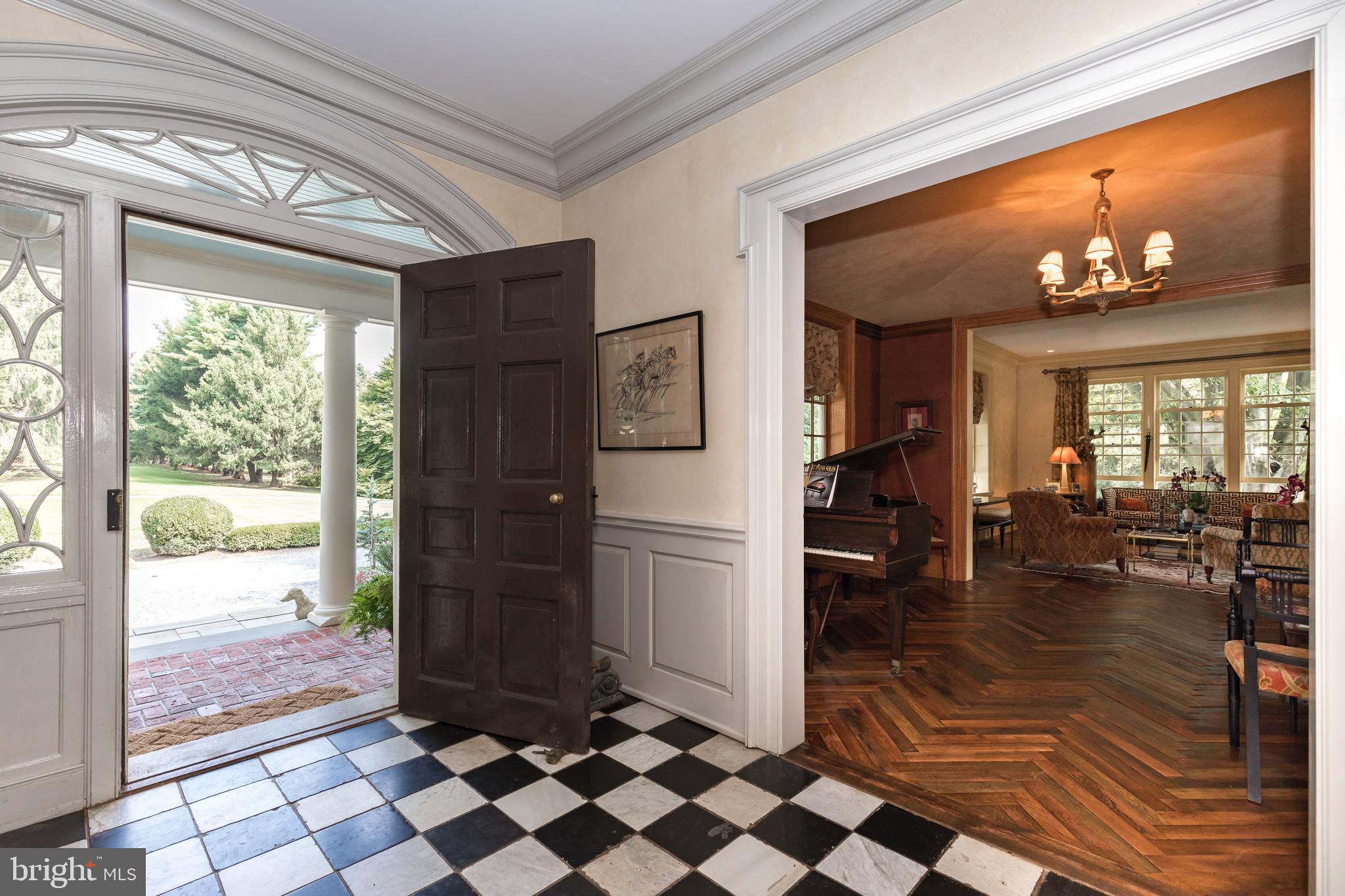 Fox Hill Farm, nestled in the heart of Chester County's bucolic horse country, is an exquisite country estate and income-producing equestrian facility that evokes the best of Europe and Southeastern Pennsylvania. Situated on 80+ acres, the home was designed in 2006 by renowned architect, Richard Buchanan, who was recently named to the Forbes Top Residential Architects 2025 list. The property retains the charm of the historic farm through the rolling topography, original spring house, and barns. The home offers an abundance of modern amenities while maintaining the authentic feel of a historic fieldstone estate. Enter the stone driveway, past mature trees and horse pastures before being welcomed by mature boxwoods and garden hydrangeas at the front entrance featuring a 19th century mahogany door with period antique hardware. The foyer's black and white checkerboard Italian marble tile once graced an English manor home. Cross 200-year-old French Oak floors imported from a French chateau to discover a music room fitted for a grand piano, an elegant living room, and arched doorways to a dining room that allows views of the home's beautiful landscape. Tall ceilings and farmhouse wood floors lead to an expansive family room where one can relax in front of a large open-hearth fireplace. The kitchen was designed with reclaimed hardwood floors and exposed ceiling beams. Foodies will rejoice at the kitchen’s amenities including gorgeous white marble countertops, a custom butcher block, a soapstone prep area with sink, a Lacanche range with 3 ovens, warming drawers and 7 burners, side-by-side full size Sub Zero refrigerators/freezers, a built in Miele cappuccino maker, and a Shaws Original farmhouse sink. Outside, adjacent to the kitchen, enjoy a stone barbecue complex with both propane and wood grills. The 1200 bottle wine cellar, large butler’s pantry with a full size Sub Zero wine fridge and adjacent wet bar will complete your entertaining experience. Host guests in the formal dining room, the kitchen’s generous eat-in area or dine alfresco on the sweeping outdoor veranda while watching wildlife on the pond or in the back pastures. Climb the gracefully curved Greek ornamented staircase to five lovely second-floor bedrooms; three with two baths, an additional guest room with en-suite bathroom, and a primary bedroom suite. The Primary suite features a vast room-sized walk-in closet with built-in shoe rack and shelves, a sumptuous Jerusalem stone floored bathroom, luxuriate in the large shower and copper clad soaking tub and steam room. Catch the evening breeze from the outdoor balcony overlooking the countryside. The third floor offers ample office space, a powder room, and a spare room with a full bath that can be used as a guest room, extra library, or creative workspace. On the lower level, enjoy the movie screening room designed like a glorious Moroccan tent, another large family room, and a temperature-controlled wine cellar that holds 1200 bottles and boasts another wet sink and tasting area. There is also a pool table area, laundry room, and a large yoga/workout studio. Beyond the house, 80 acres of beautiful views and bountiful space invites picnics, parties and outdoor recreation. After a game on the tennis court, cool off in the pool surrounded by locally quarried Avondale fieldstone or relax in the newly constructed timber framed pool house with unencumbered private views of the surrounding scenery. Equestrians will indulge in all that Cheshire Hunt country offers, with endless trail riding and ample competition venues. The equestrian facility is income-generating, includes 27 total stalls, an indoor, 2 outdoor arenas and a cross country jump field. It is currently leased to an international level rider. Fox Hill Farm is within an hour of Philadelphia and an easy commute to all the major cities by railway in Downingtown or Wilmington, Delaware.