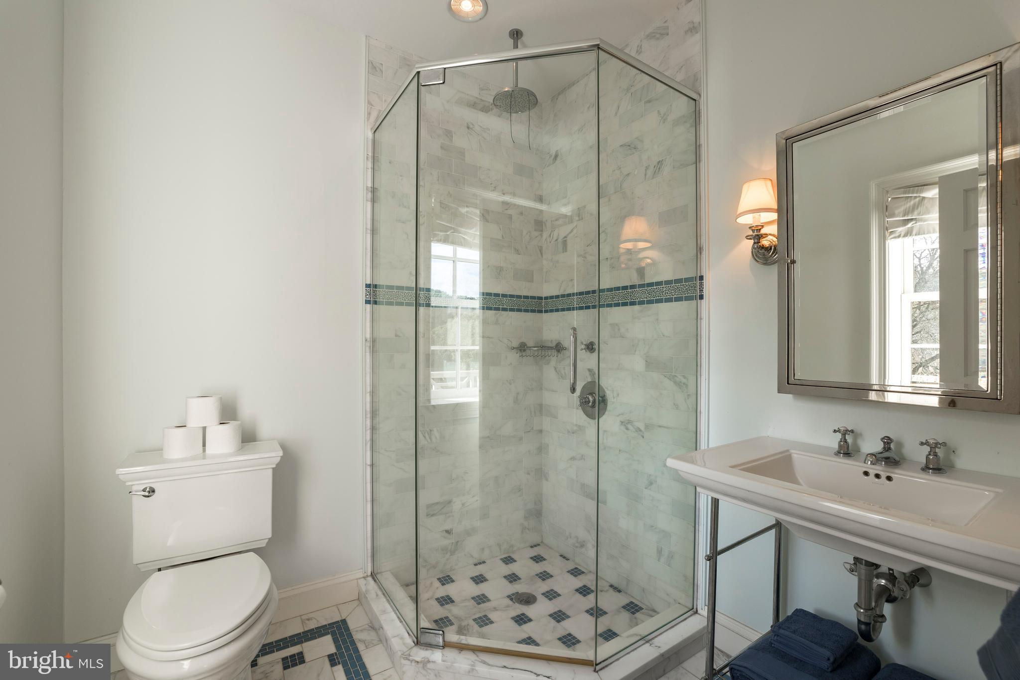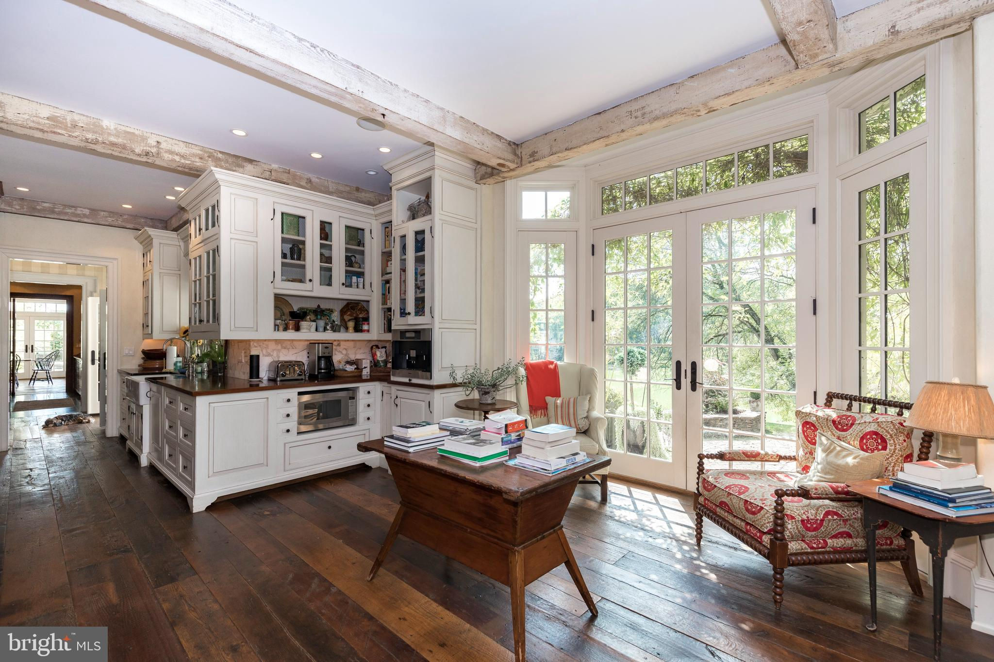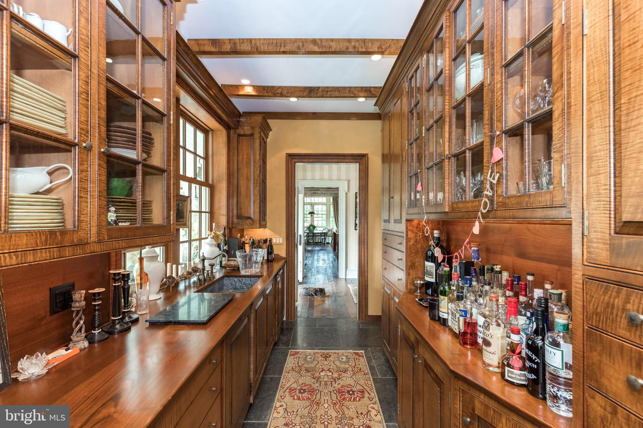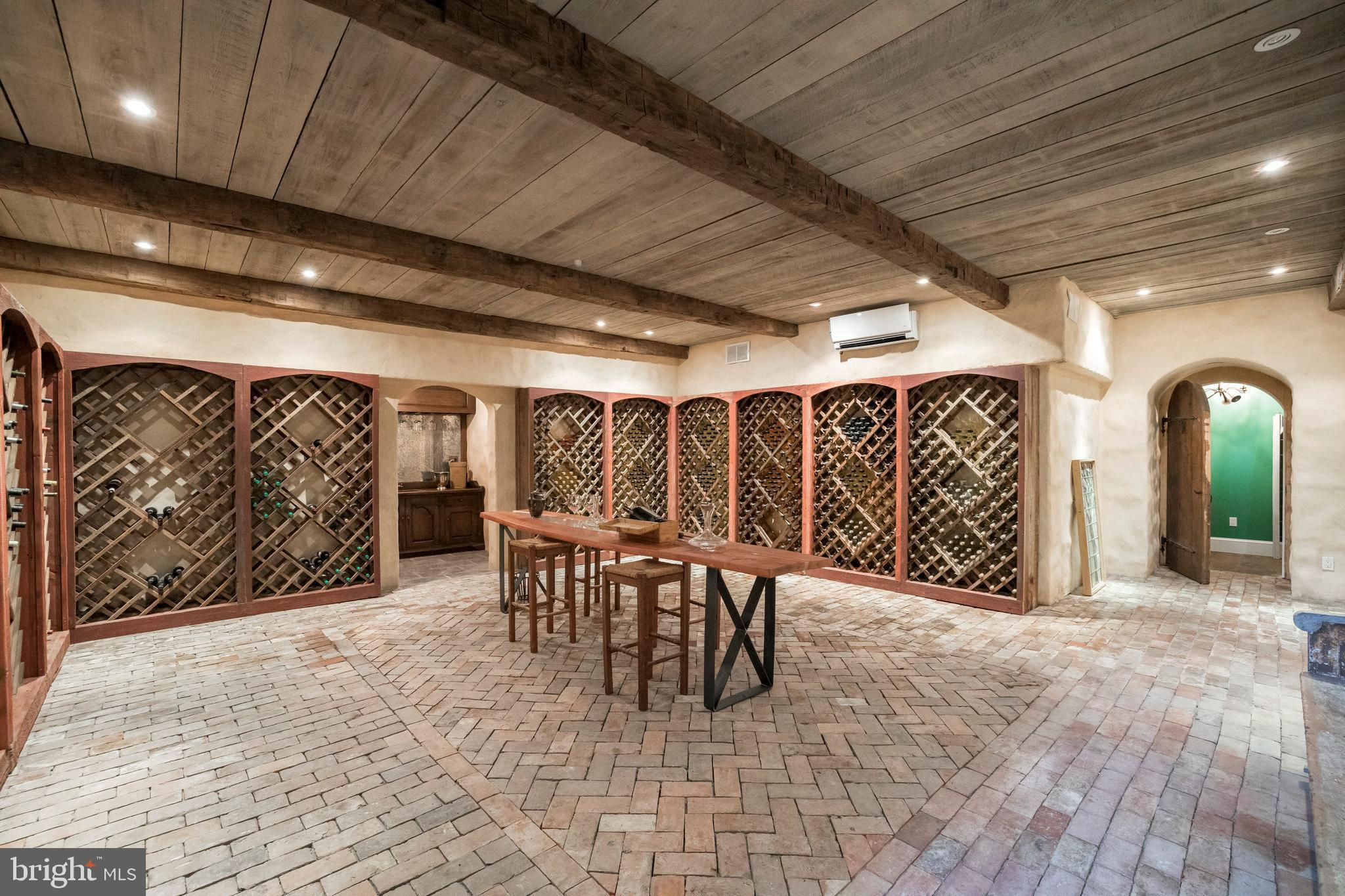 Fox Hill Farm, nestled in the heart of Chester County's bucolic horse country, is an exquisite country estate and income-producing equestrian facility that evokes the best of Europe and Southeastern Pennsylvania. Situated on 80+ acres, the home was designed in 2006 by renowned architect, Richard Buchanan, who was recently named to the Forbes Top Residential Architects 2025 list. The property retains the charm of the historic farm through the rolling topography, original spring house, and barns. The home offers an abundance of modern amenities while maintaining the authentic feel of a historic fieldstone estate. Enter the stone driveway, past mature trees and horse pastures before being welcomed by mature boxwoods and garden hydrangeas at the front entrance featuring a 19th century mahogany door with period antique hardware. The foyer's black and white checkerboard Italian marble tile once graced an English manor home. Cross 200-year-old French Oak floors imported from a French chateau to discover a music room fitted for a grand piano, an elegant living room, and arched doorways to a dining room that allows views of the home's beautiful landscape. Tall ceilings and farmhouse wood floors lead to an expansive family room where one can relax in front of a large open-hearth fireplace. The kitchen was designed with reclaimed hardwood floors and exposed ceiling beams. Foodies will rejoice at the kitchen’s amenities including gorgeous white marble countertops, a custom butcher block, a soapstone prep area with sink, a Lacanche range with 3 ovens, warming drawers and 7 burners, side-by-side full size Sub Zero refrigerators/freezers, a built in Miele cappuccino maker, and a Shaws Original farmhouse sink. Outside, adjacent to the kitchen, enjoy a stone barbecue complex with both propane and wood grills. The 1200 bottle wine cellar, large butler’s pantry with a full size Sub Zero wine fridge and adjacent wet bar will complete your entertaining experience. Host guests in the formal dining room, the kitchen’s generous eat-in area or dine alfresco on the sweeping outdoor veranda while watching wildlife on the pond or in the back pastures. Climb the gracefully curved Greek ornamented staircase to five lovely second-floor bedrooms; three with two baths, an additional guest room with en-suite bathroom, and a primary bedroom suite. The Primary suite features a vast room-sized walk-in closet with built-in shoe rack and shelves, a sumptuous Jerusalem stone floored bathroom, luxuriate in the large shower and copper clad soaking tub and steam room. Catch the evening breeze from the outdoor balcony overlooking the countryside. The third floor offers ample office space, a powder room, and a spare room with a full bath that can be used as a guest room, extra library, or creative workspace. On the lower level, enjoy the movie screening room designed like a glorious Moroccan tent, another large family room, and a temperature-controlled wine cellar that holds 1200 bottles and boasts another wet sink and tasting area. There is also a pool table area, laundry room, and a large yoga/workout studio. Beyond the house, 80 acres of beautiful views and bountiful space invites picnics, parties and outdoor recreation. After a game on the tennis court, cool off in the pool surrounded by locally quarried Avondale fieldstone or relax in the newly constructed timber framed pool house with unencumbered private views of the surrounding scenery. Equestrians will indulge in all that Cheshire Hunt country offers, with endless trail riding and ample competition venues. The equestrian facility is income-generating, includes 27 total stalls, an indoor, 2 outdoor arenas and a cross country jump field. It is currently leased to an international level rider. Fox Hill Farm is within an hour of Philadelphia and an easy commute to all the major cities by railway in Downingtown or Wilmington, Delaware.