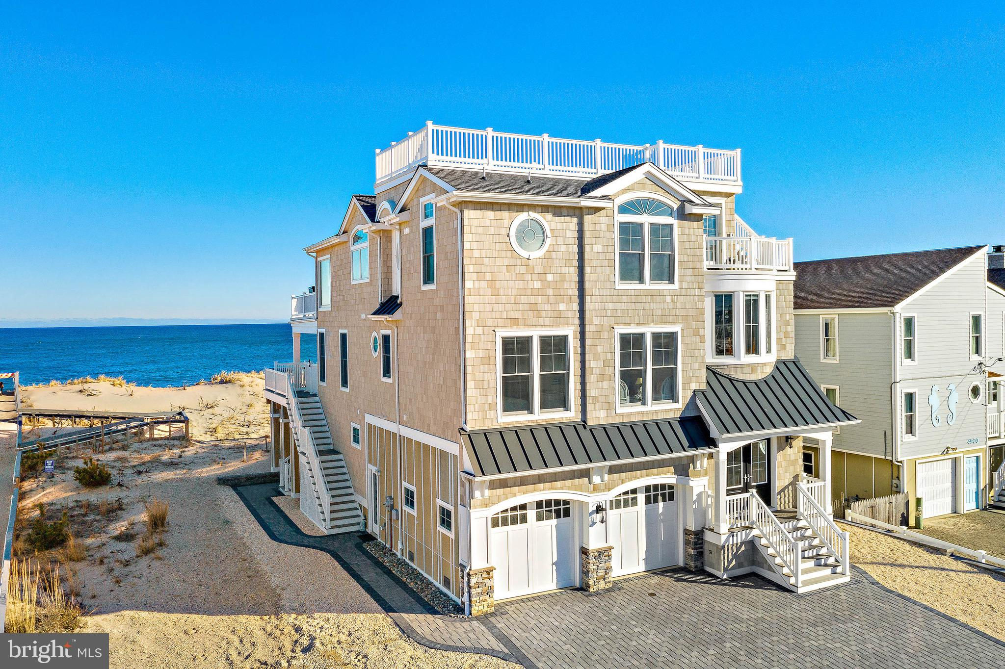 Welcome to Sunrise Sensation, where the allure of the ocean meets unrivaled luxury in an estate crafted for the most discerning traveler. This breathtaking oceanfront residence is more than a home—it's a sanctuary of elegance and tranquility, designed to offer an unparalleled escape from the everyday. Ascend to the top floor, where the open concept living area unfolds like a dream. Here, the living room, dining room, and gourmet kitchen blend seamlessly into one another, bathed in the golden light of dawn. Expansive floor-to-ceiling windows frame sweeping views of the Atlantic Ocean, each wave sparkling like a diamond in the morning sun. Imagine cozying up by the elegant gas fireplace in the great room, where the soft glow of the flames complements the stunning vista. Gather with loved ones around the dining table, where sumptuous meals are enjoyed with the ocean as your ever-changing backdrop. The adjoining deck, with seating for 10, offers the perfect setting for intimate, al fresco dining as you savor the salty breeze and panoramic views. For the culinary artist, the state-of-the-art kitchen stands ready to inspire. Adorned with high-end appliances and exquisite finishes, this kitchen is a masterpiece of functionality and style. Whether you're crafting a gourmet feast or simply grilling fresh catches on the gas grill, every meal becomes a celebration against the backdrop of the shimmering ocean. When the day winds down, retreat to your luxurious en-suites, each a haven of sophistication and comfort. The master king bedrooms invite you to drift off to sleep under a blanket of stars. Take the elevator or stairs to the second level where three serene bedrooms await, accompanied by two luxurious full baths. One of the bedrooms boasts an en suite bath with seamless access to the sun-drenched deck and sparkling pool—your private retreat. The cozy living area, complete with a stylish wet bar and beverage fridge, invites relaxation. With just a step through the sliding doors, you'll find yourself on the oceanfront deck, where the rhythmic sound of the waves and the shimmering pool come together to create a blissful escape. The lower level offers a peaceful third sitting area, along with a beautifully appointed bedroom and bath, creating a private sanctuary for guests or family to unwind and recharge. Every detail of Sunrise Sensation has been thoughtfully curated to enhance your experience. An elevator glides you effortlessly between levels, while two outdoor showers await to refresh you after sun-soaked days. Lounge by the private pool, perched above the shoreline, where you can soak in the serene beauty of the ocean from your personal oasis. Expansive decks invite you to relax and soak in the tranquil ambiance of this exclusive retreat. With ample parking in a 2-car garage, Sunrise Sensation ensures that every facet of your stay is as luxurious as it is seamless. Embrace the ultimate seaside escape, where every sunrise is a new chapter in a story of indulgence and serenity. This is not just a vacation home—it’s your personal haven of elegance, where every moment is infused with the magic of the sea.