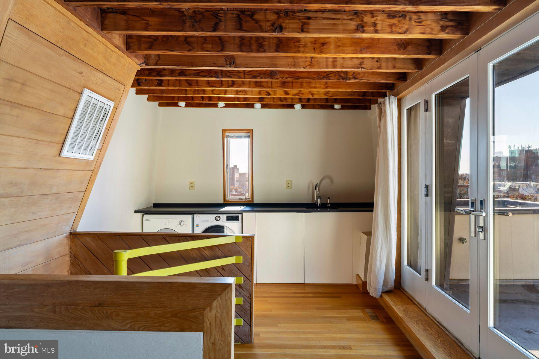 307 S. Chadwick Street is a rare chance to own a masterfully designed duplex tucked on one of Center City’s most charming, historic blocks. Once a 19th-century carriage house, this architect-owned residence was transformed over five decades by Frank Weise into a bold statement of mid-century and postmodern design. The striking façade fuses a Kahn-inspired brick center with a dramatic copper-clad mansard roof and cantilevered metal cornice—where even utilitarian features like the original hoisting boom double as sculpture. Restored and updated by Weise’s heirs, this home is both a time capsule and a modern masterpiece. Configured as a duplex with separate entrances, the lower unit—Weise’s former studio—spans three levels plus a basement. Soaring 16’ ceilings, slate floors, a floating staircase, and the iconic honeycomb window wall make this space unforgettable. A kitchenette and half bath add flexibility for creative or live/work use. Upstairs, the private residence is a sun-drenched sanctuary with dramatic volumes, a chef’s kitchen, guest bedroom, and a top-floor primary suite offering 360° views of the city skyline. The upper lounge includes laundry and access to a potential roof deck. With three bedrooms, 1.5 baths, and a private carport, this one-of-a-kind home offers style, function, and flexibility just steps from Rittenhouse Square. A true architectural gem—perfect for live/work, multigenerational living, or a savvy investor.