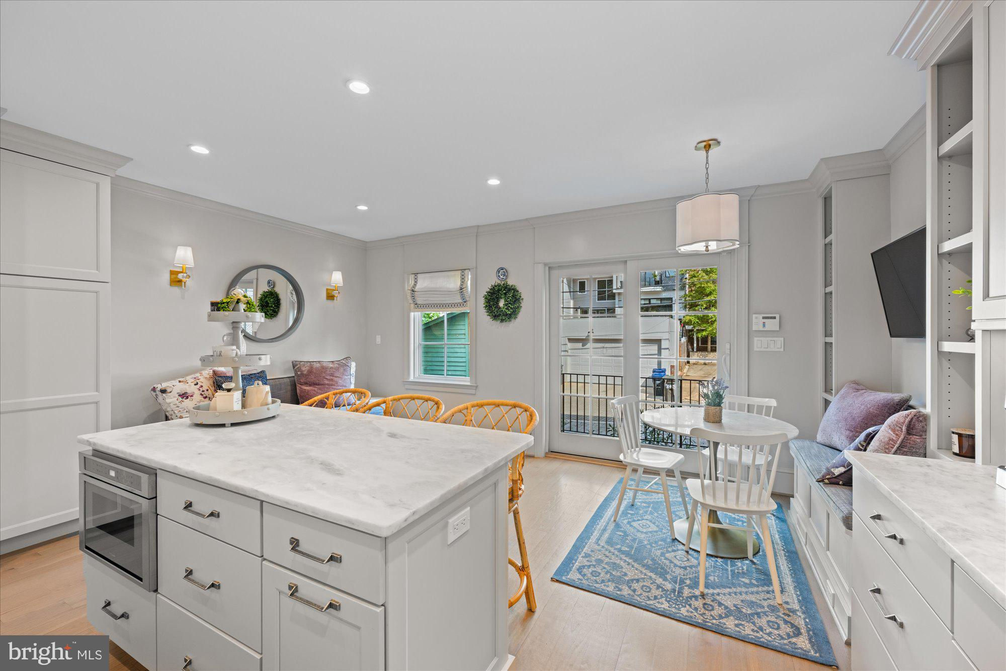 A complete re-build by esteemed Chryssa Wolfe/Hanlon Design Build in 2020 transformed this spacious home into a masterpiece of comfortable luxury living in Georgetown. Quality of construction and impeccable style are evident on all four levels of its 3500 square feet of living space featuring 5 bedrooms, 4.5 baths. The owners spared no expense in perfecting their home, adding a new top level with a large owner's suite and excavating the lower level to provide a wonderful walk-out in-law suite with 5th bedroom and smashing, beautifully equipped family/entertainment room. Sunlit interiors with coffered ceilings, large windows, beautiful wood floors, crown moldings, exquisite built-ins, abundant closets, decorator decor and gorgeous park views - combine to make this a unique residence. From the front entry with its large yard sitting up from the street, one enters an inviting living room perfect for entertaining. The state-of-the-art kitchen with center isle, abundant cabinetry and marble work surfaces, sitting and table space, has doors leading to the back porch and patio with parking for 2+ cars. The two upper levels of the home offer spacious 4 bedrooms including the owner's suite, and 3 designer bathrooms. The location provides a superior urban lifestyle of great convenience with a neighborhood feel. Furnishings for sale by separate addendum. Schedule your tour today!